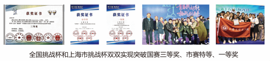聚焦学生创新创业培养,形成孵化和扶持制度,探索形成“社会实践项目→创新创业训练计划→挑战杯项目”的学生科创能力培育路径,大学生创新创业训练计划获得国家级立项4项,上海市立项2项;第十六届“挑战杯”获得国赛特等奖1项,市赛特等奖1项,三等奖1项;第十七届“挑战杯”获得市赛特等奖1项。