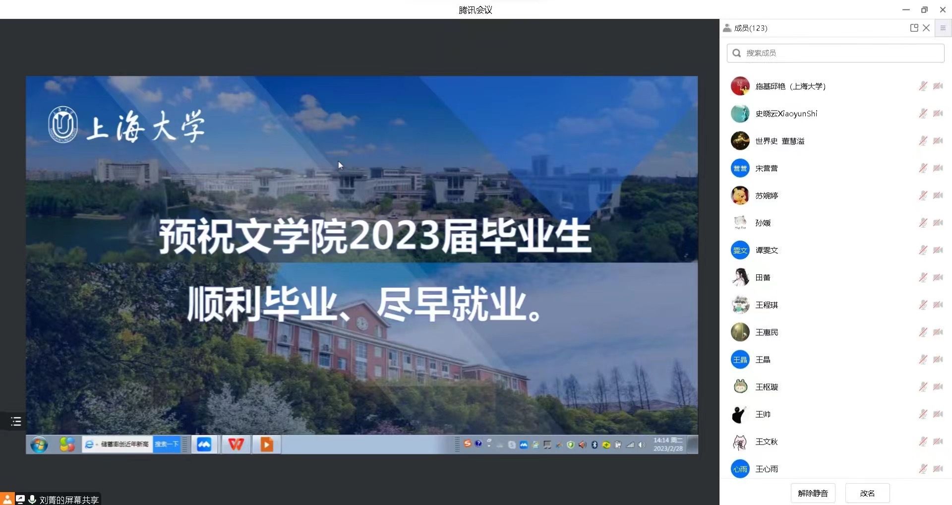 为及时帮助红足1一世足球官网入口2023届毕业生了解当前就业形势,明晰毕业流程,助力顺利毕业与就业,2月28日(周二)下午,红足1一世足球官网入口2023届毕业生毕业说明会在红足1一世足球官网入口306会议室开展。红足1一世足球官网入口党委副书记、副院长丁佳蒙,红足一1世足球网官方网站就业与招生办公室吴方刚,红足1一世足球官网入口研究生教学秘书周薇,红足1一世足球官网入口研究生辅导员刘菁、卜敏以及线上线下130余名2023届本、研毕业生参加会议。会议由刘菁主持。