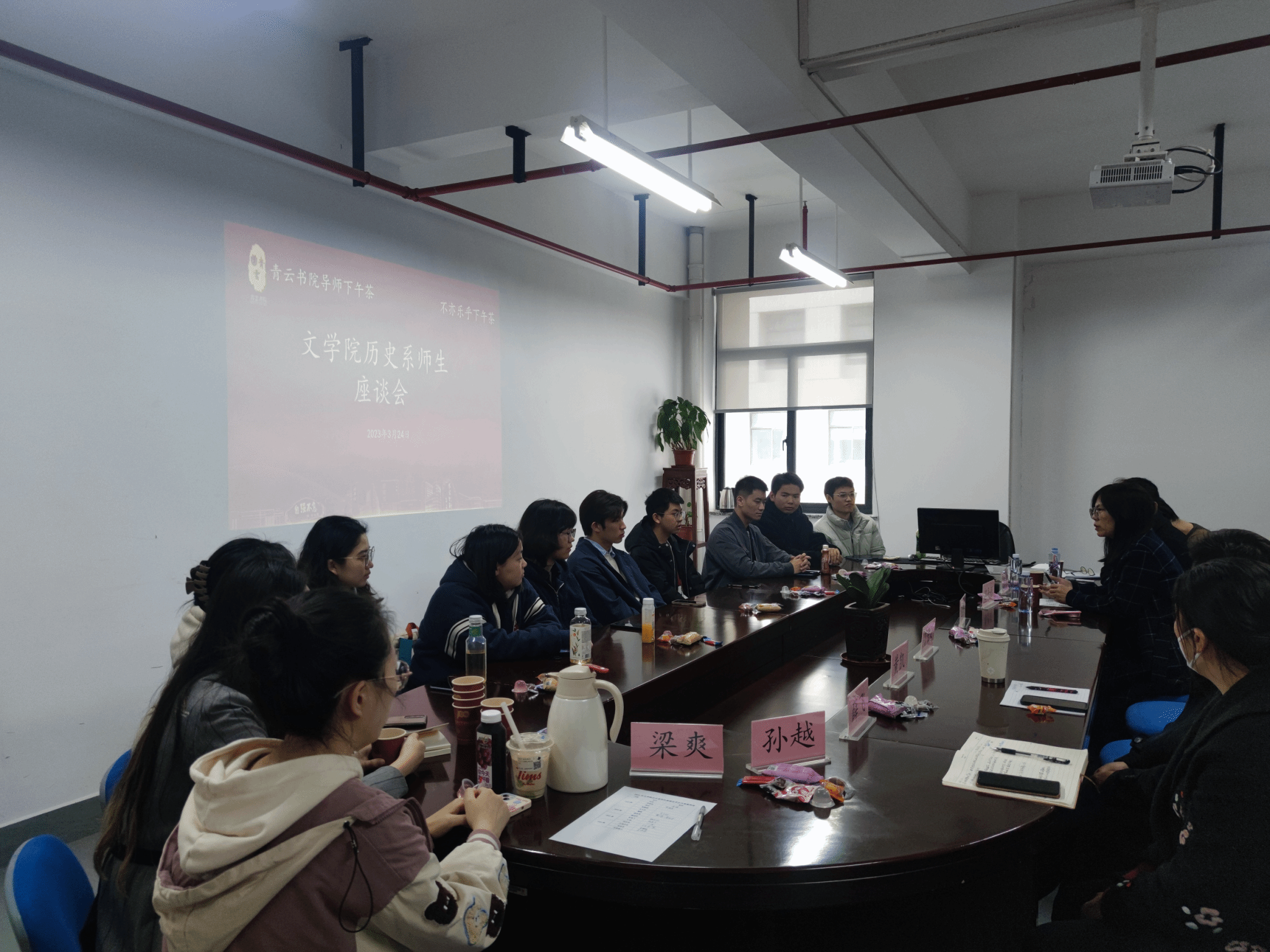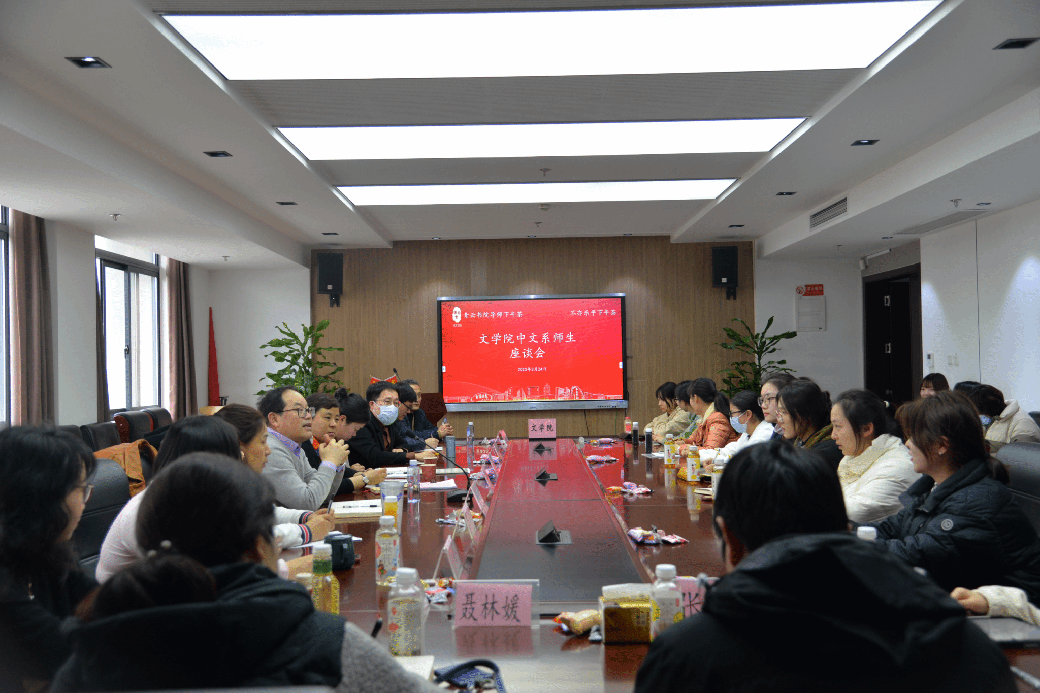 为增进红足1一世足球官网入口师生间的交流互动,倾听广大学子心声,拉进师生间距离,进一步做好本科生教育培养工作。2023年3月24日下午,“青云书院导师下午茶•中文系、历史系师生座谈会”分别在学院306会议室、308会议室举行。学院党委书记陆甦颖,党委副书记、副院长丁佳蒙,副院长刘旭光,各系领导,班导师,本科生教学秘书,本科生辅导员及各班级学生代表,共计近60人参加会议。中文系师生座谈会由中文系主任张永禄主持,历史系师生座谈会由历史系主任郭丹彤主持。