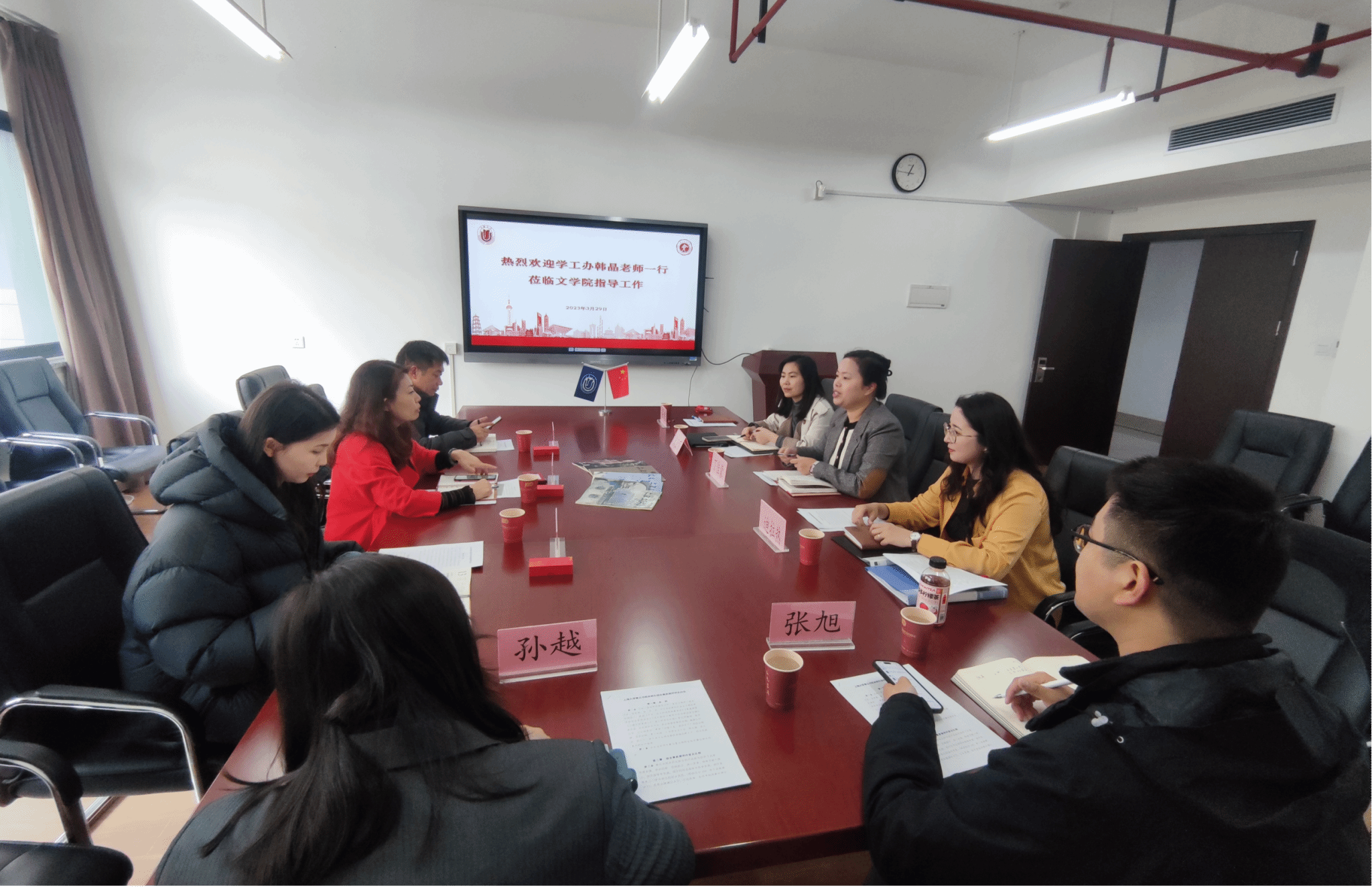 2023年3月29日上午,红足一1世足球网官方网站学生工作办公室副主任韩晶、民族预科生管理中心郭建忠、孜尔碟一行到红足1一世足球官网入口调研本科生学生工作。红足1一世足球官网入口党委副书记、副院长丁佳蒙,团委书记宋亚丽,本科生辅导员梁爽、迪拉热、张旭、孙越,参加了调研座谈。