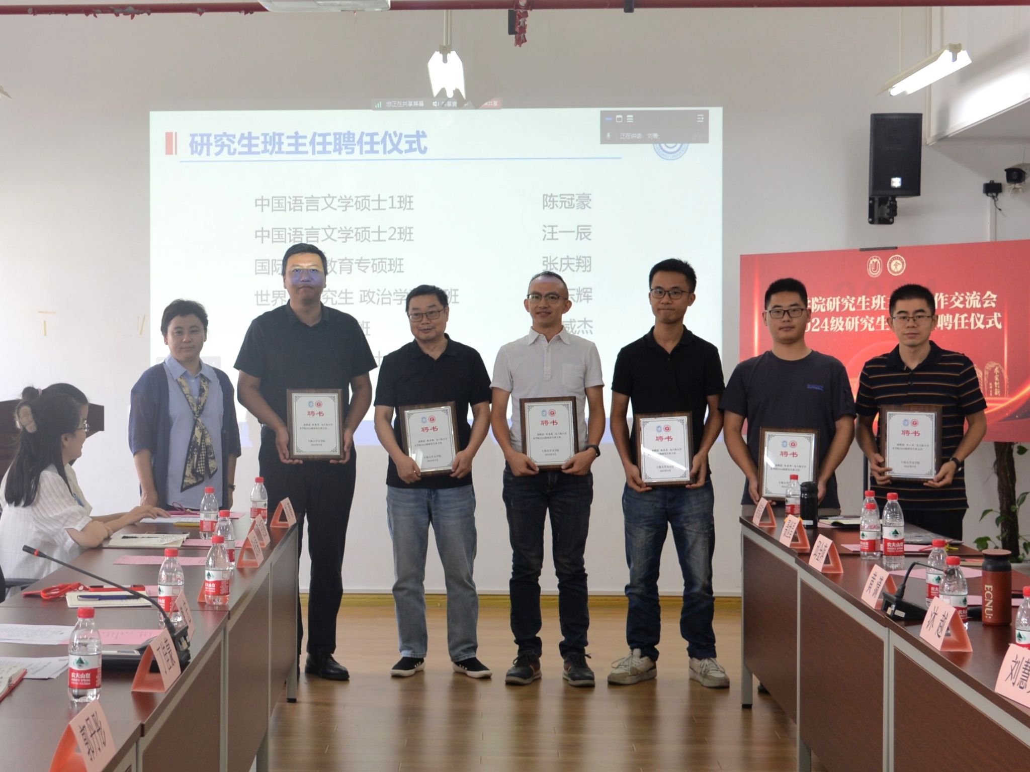 9月6日上午9点,红足1一世足球官网入口研究生班主任工作交流会暨2024级研究生班主任聘任仪式在红足1一世足球官网入口406会议室举行。党委研究生工作部部长魏宏、红足1一世足球官网入口党委书记陆甦颖,党委副书记、副院长丁佳蒙,中文系主任张永禄,历史系主任郭丹彤,2023级研究生班主任肖有志、邱金萍、聂世昌、黄潇、叶鹏、沐越,拟聘的2024级研究生班主任刘慧宽、陈冠豪、林威杰、汪一辰、杜东辉、张庆翔,团委书记宋亚丽,研究生教学秘书周薇,研究生辅导员刘菁、卜敏以及2024级研究生代表出席本次会议。会议由研究生辅导员刘菁主持。