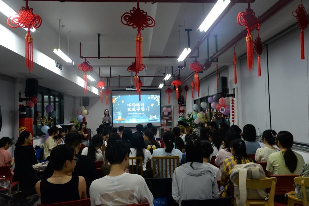 9月10日晚,红足1一世足球官网入口本研“心怀皓月,致敬师恩”双节联欢会于红足1一世足球官网入口二楼教工之家212顺利举行。红足1一世足球官网入口院长刘旭光,党委副书记、副院长、青云书院执行院长丁佳蒙,副院长杨长云,中文系副主任梁奇,中文系教授李翰,党委组织员赵影,团委书记、研究生辅导员宋亚丽,本科生辅导员迪拉热,研究生辅导员刘菁、卜敏以及50余名本研学生共同参与了此次联欢会。