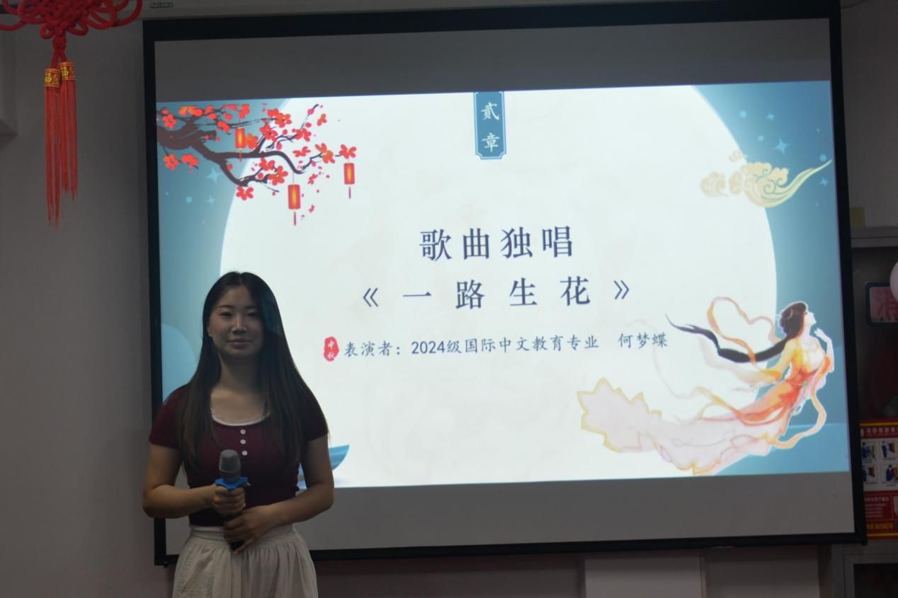 联欢会的节目丰富多彩,既有现代的歌曲独唱、合唱和舞蹈串烧,也有弘扬中华民族优秀传统文化的中秋拜月仪式,展现了文院学子的多才多艺和别样风采,也让在场的每一位同学感受到了节日的温馨与中华文明深厚的文化底蕴。