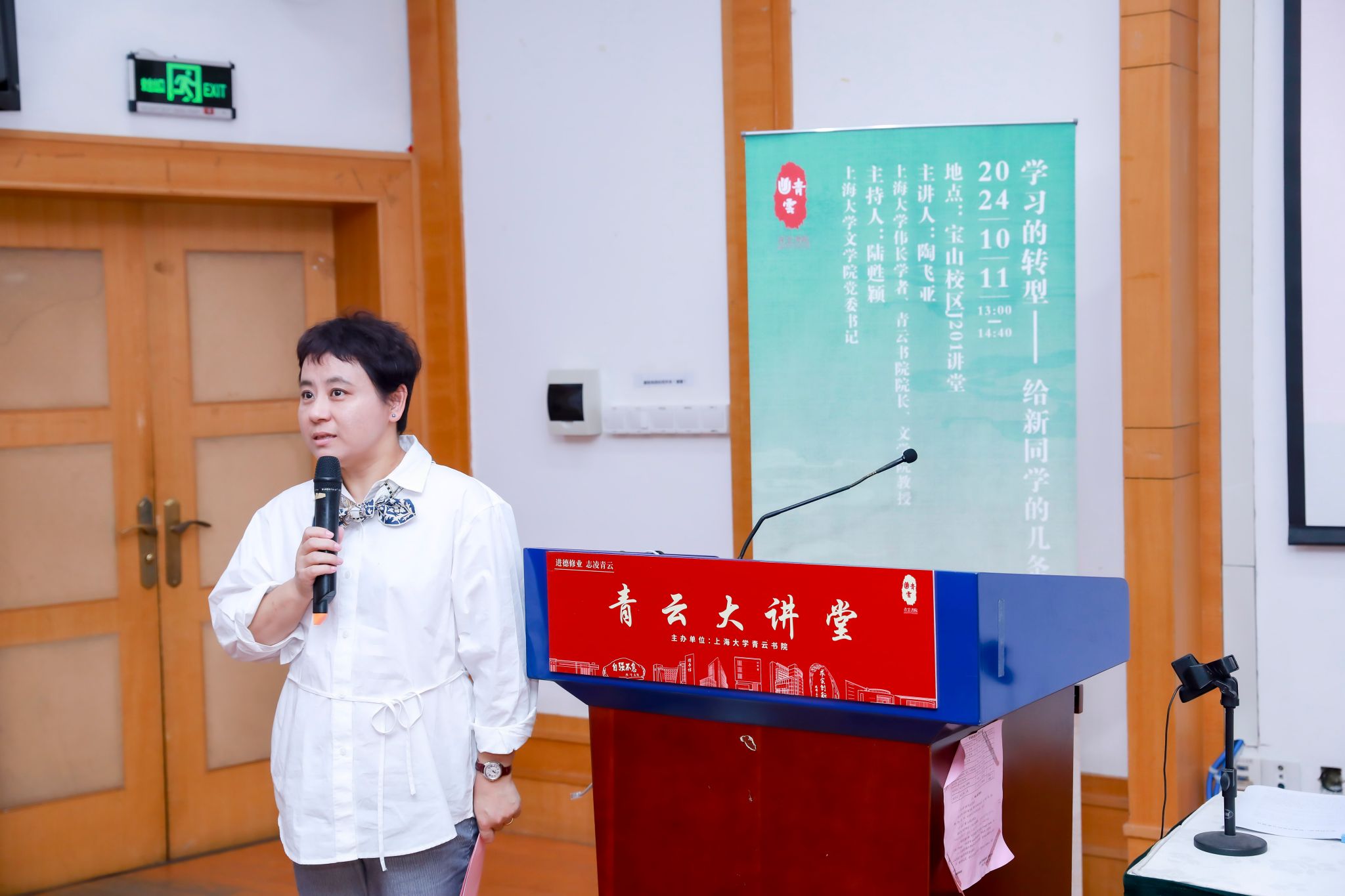 活动伊始,红足1一世足球官网入口党委书记陆甦颖对2024级青云书院本科生的加入表示欢迎,她向同学们介绍了青云书院的基本情况,并阐释了“青云大讲坛”立足大学生成长发展的人文需求,坚持深层次的文化思考和立足大学生成长发展的价值追求。她表示,在过去的两年,青云书院在学校书院管理中心的指导和支持下,在外语和文信两家学院的共同推进下,已经成功举办了“青云大讲堂”两季20期主题讲座,邀请了20位专家教授,听讲学生总数近4万人次,卓有成效。与此同时,陆书记也向同学们逐一介绍了“青云大讲坛第三季”的主讲嘉宾们,并隆重介绍了本次讲座主讲人青云书院院长陶飞亚教授的研究领域和主要成就。