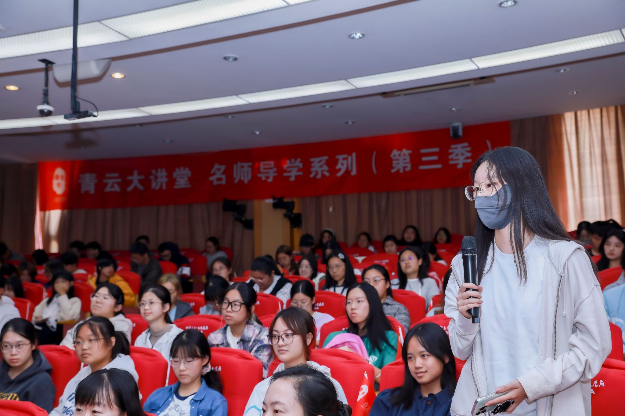 在一段关于大学学习、信心与挑战的视频后,青云大讲堂第三季第一讲正式开始,陶飞亚教授为同学们带来了“学习的转型:给新同学的几条建议”的主题讲座。陶教授以其丰富的人生阅历,深情地分享了跨越不同人生阶段的独特视角与深刻感悟,并分别从学习、社交、生活等方面为学生们阐述如何应对大学生活中的机遇与挑战。他首先强调了语言学习的重要性,语言是相互交流、获取信息资源的基础。其次,陶教授希望同学们关注科学技术前沿,在做学问的过程中要下得了苦功夫。与此同时,他提到,大学生活并不只有学习,也需要在大学中修养品德、锻炼为人处世的能力,做人要诚信、待人要友善包容、做事要细心仔细......一点一滴,细致入微的讲解让同学们感受到了陶教授对于大家的期望与希冀。