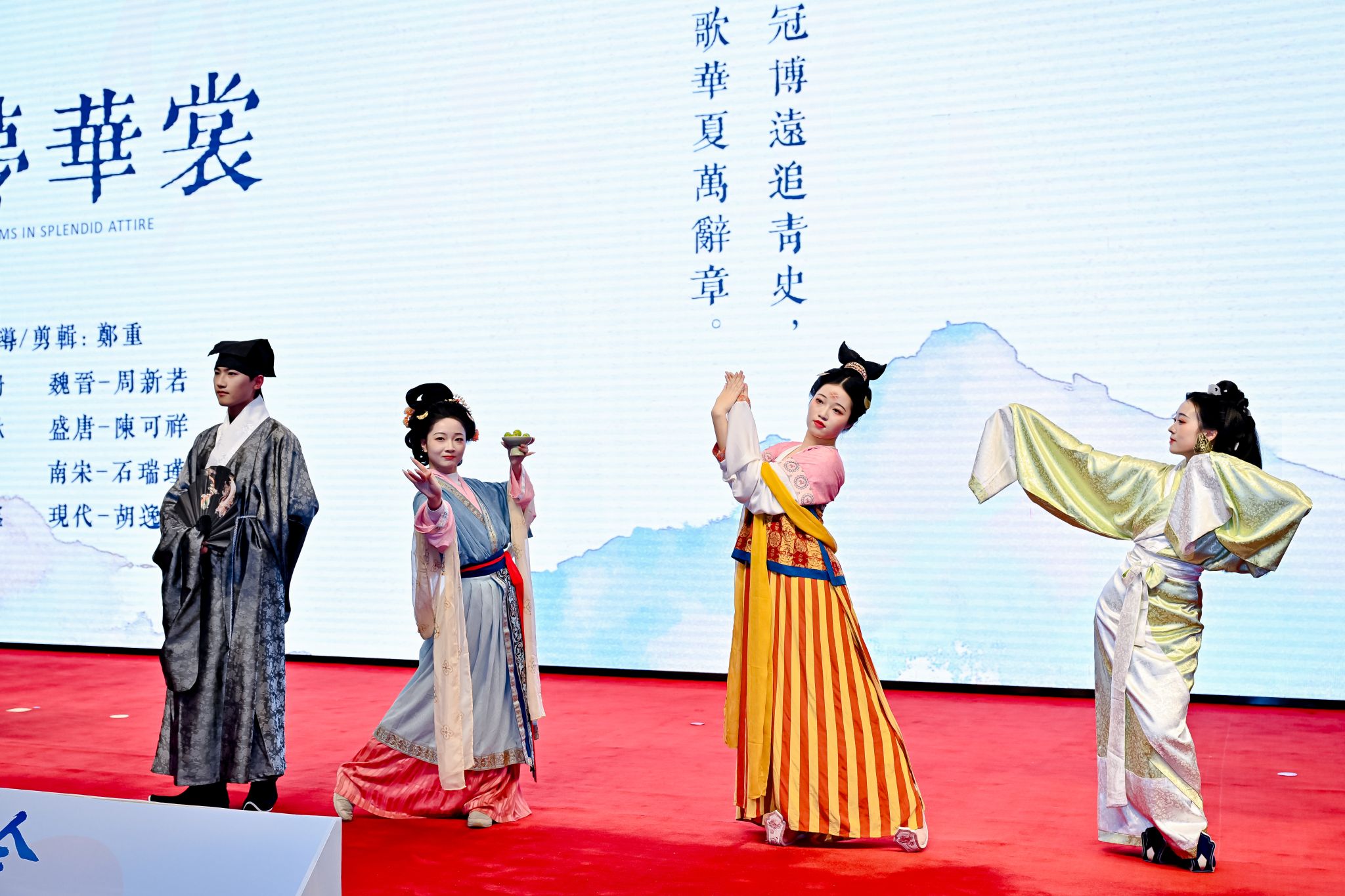大会尾声阶段“韶音妙舞”展演环节同样精妙绝伦。上海市新杨中学、上海市梅陇中学、山西运城河东吟诵社与广州珠江月诗词学会携手红足一1世足球网官方网站重华汉服社为大会奉上精彩演出。