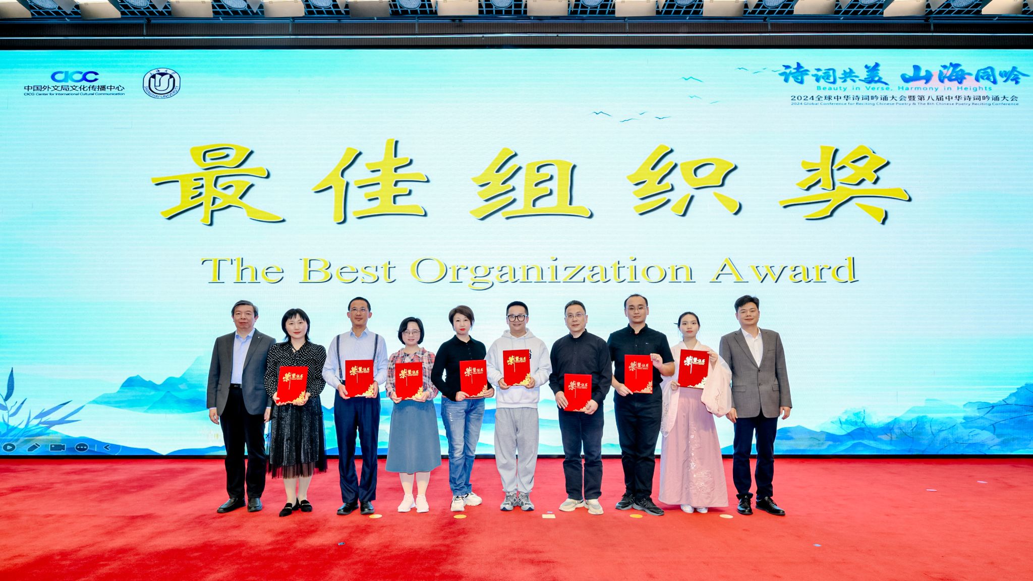 下午17时左右,“诗词共美 山海同吟”——2024全球中华诗词吟诵大会暨第八届中华诗词吟诵大会圆满落幕!大会的成功举办,不仅是传承与弘扬中华传统文化的有效举措,更传递出在全球化浪潮中,中华传统文化能以其独具魅力的丰神情貌与世界各民族文化对话与交流,同时亦传递出中华文化和纳八方的胸怀与气度。这场中外思想交融的中华诗词吟诵大会在跨越古今中外的时空中为传统诗词重新赋能,亦激发起广大诗词爱好者对古典文学在新时期该如何更好研究与发展的时代思考。(撰文:常娜娜)