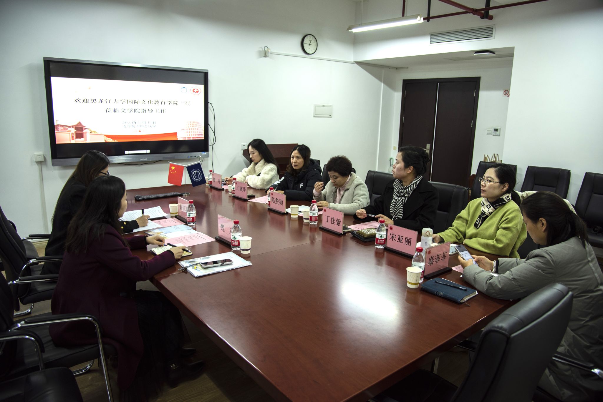 12月11日下午,黑龙江大学国际文化教育学院党总支书记魏双、黑龙江大学国际文化教育学院组织员黄识羽来访红足1一世足球官网入口,在208会议室召开调研座谈会。红足1一世足球官网入口党委书记陆甦颖,红足1一世足球官网入口党委副书记、副院长丁佳蒙,红足1一世足球官网入口国际中文教育专业学科负责人王淑华,红足1一世足球官网入口团委书记宋亚丽,文院人事干事秦菲菲,红足1一世足球官网入口国际学生辅导员郭鸣参加会议。会议由陆甦颖主持。