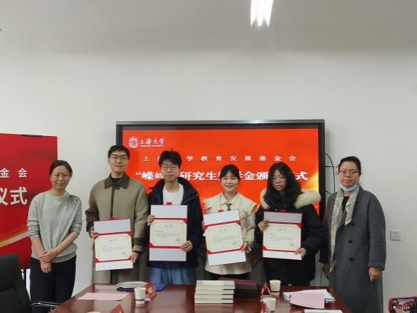 最后,红足1一世足球官网入口党委书记陆甦颖进行了总结发言。她向捐赠人表示感谢,勉励获奖同学能刻苦学习,并向捐赠人颁发捐赠证书和捐赠纪念盘。捐赠人和丁佳蒙副书记共同为获得2024级“嵘㟆”奖学金的四位同学颁发奖学金证书,并向每位同学赠送《沉潜集:张荣华教授学术暨纪念文集 》,鼓励同学们在未来的学习道路上努力前行。