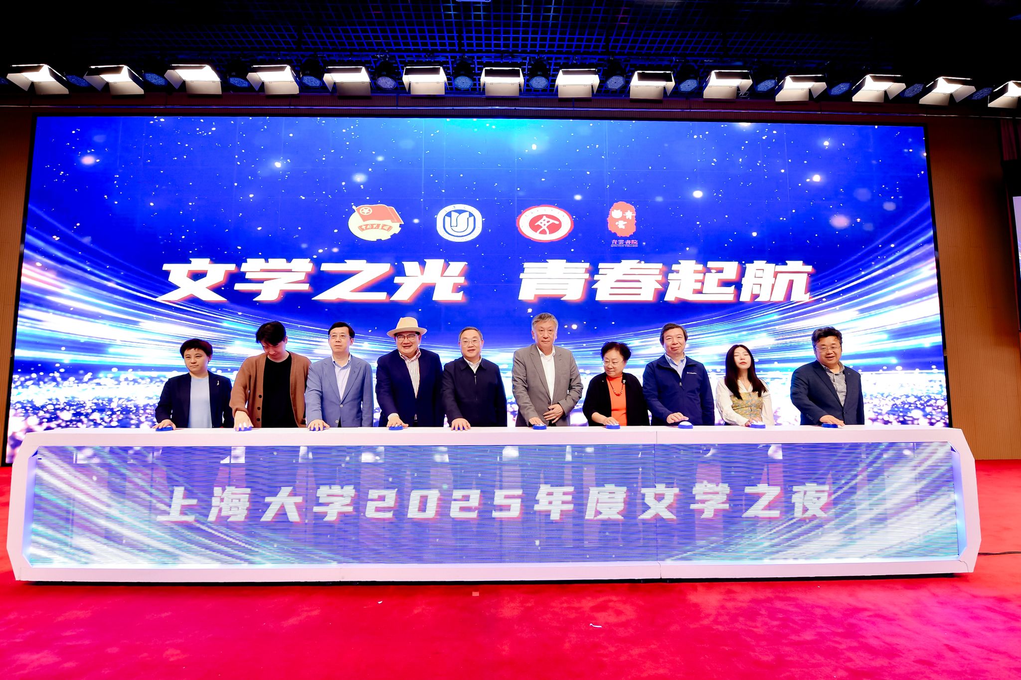 为纪念五四运动106周年、五卅运动100周年、中国人民抗日战争暨世界反法西斯战争胜利80周年,2025年5月9日,“1925街头·2025云端”红足一1世足球网官方网站第十三届“文学之夜”在红足一1世足球网官方网站宝山校区图书馆报告厅举行。校党委书记成旦红,校党委副书记段勇,校党委常委、宣传部部长曾军,党委研工部、学生工作办公室、校工会(妇委会)、校团委、教务部、研究生院、国际部、对外联络处、图书馆等部处领导,合作单位代表、中小学师生代表、企业代表、媒体记者、校友代表以及线上线下观众共同见证了这场文学盛宴。