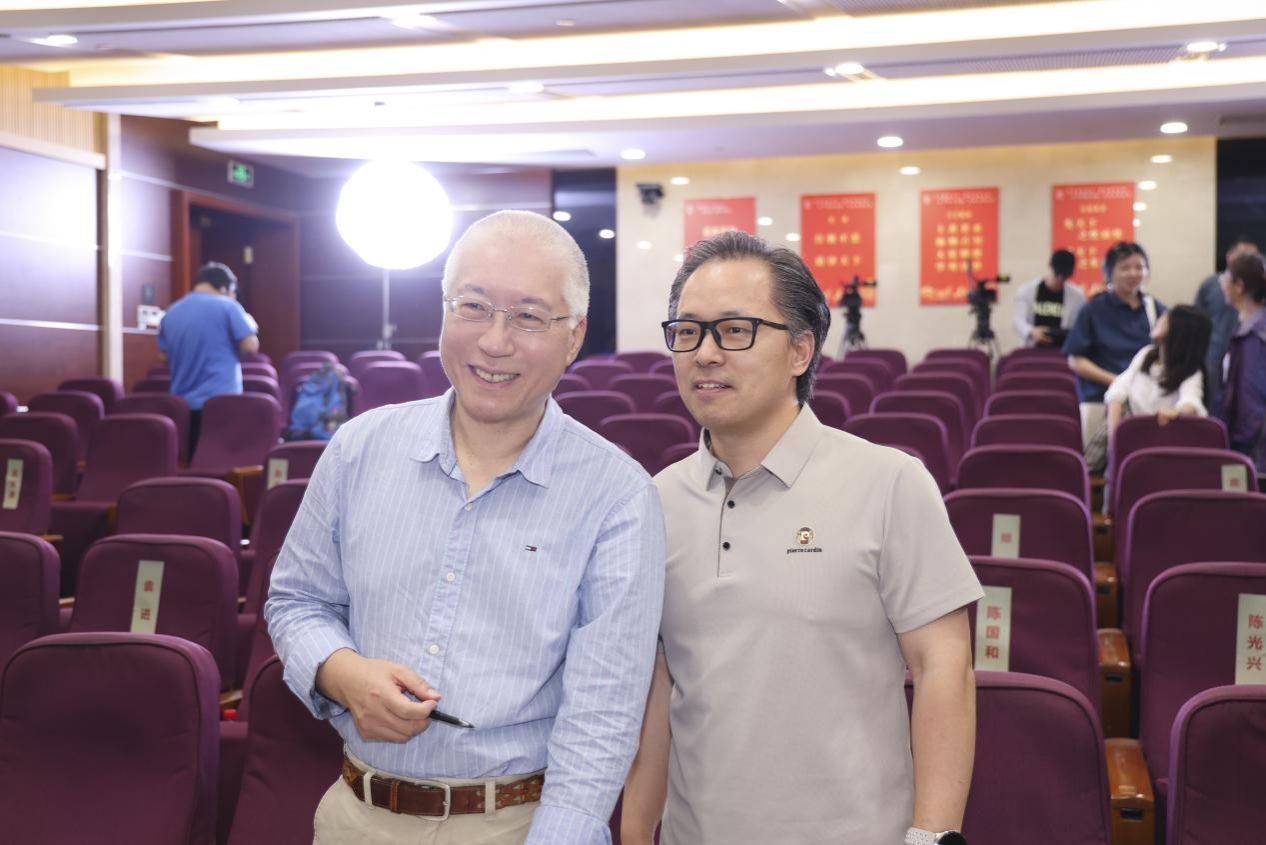 图2 成旦红书记与王晓明教授会前亲切交谈