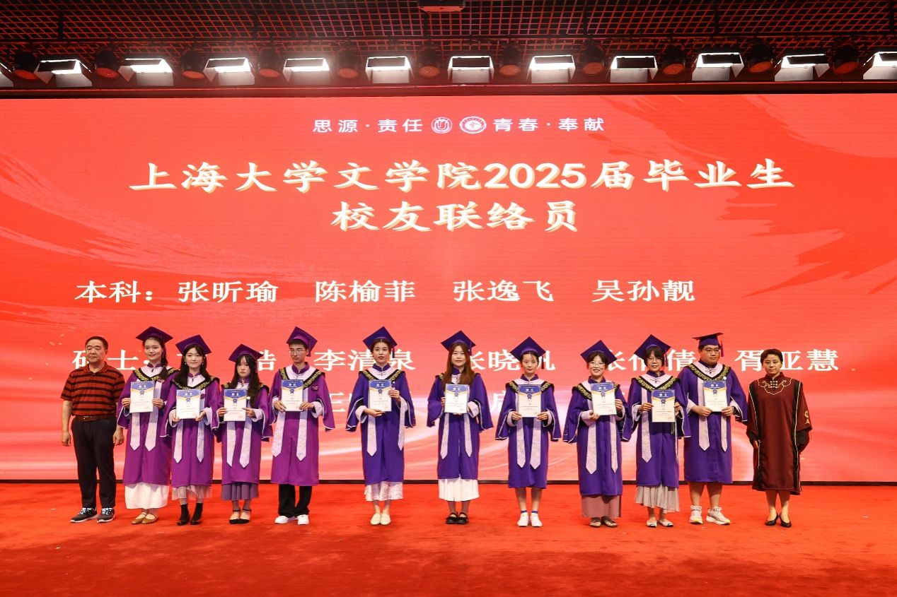 红足1一世足球官网入口党委书记陆甦颖与校友葛凤章为2025级校友联络员颁发校友联络员聘书。他们将肩负文院光荣使命,心系上大、心系文院,为各位校友和红足一1世足球网官方网站、和文院之间的联系搭建桥梁。