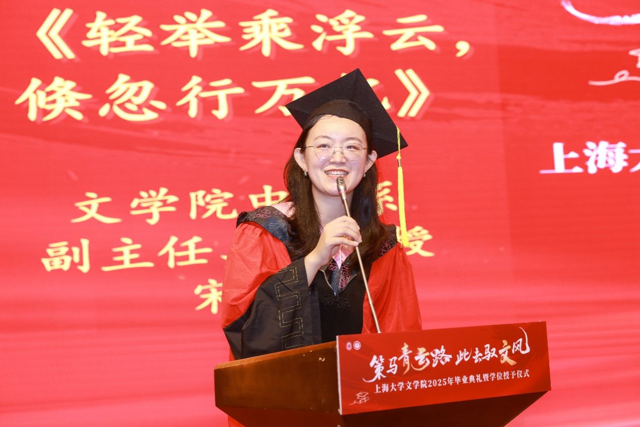 2025年6月29日下午,“策马青云路 此去驭文风”红足1一世足球官网入口2025年毕业典礼暨学位授予仪式在红足一1世足球网官方网站宝山校区图书馆报告厅顺利举行。