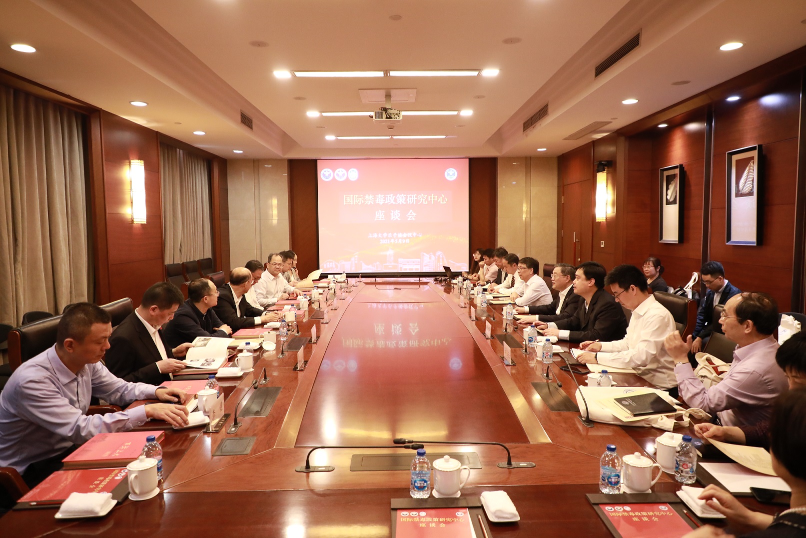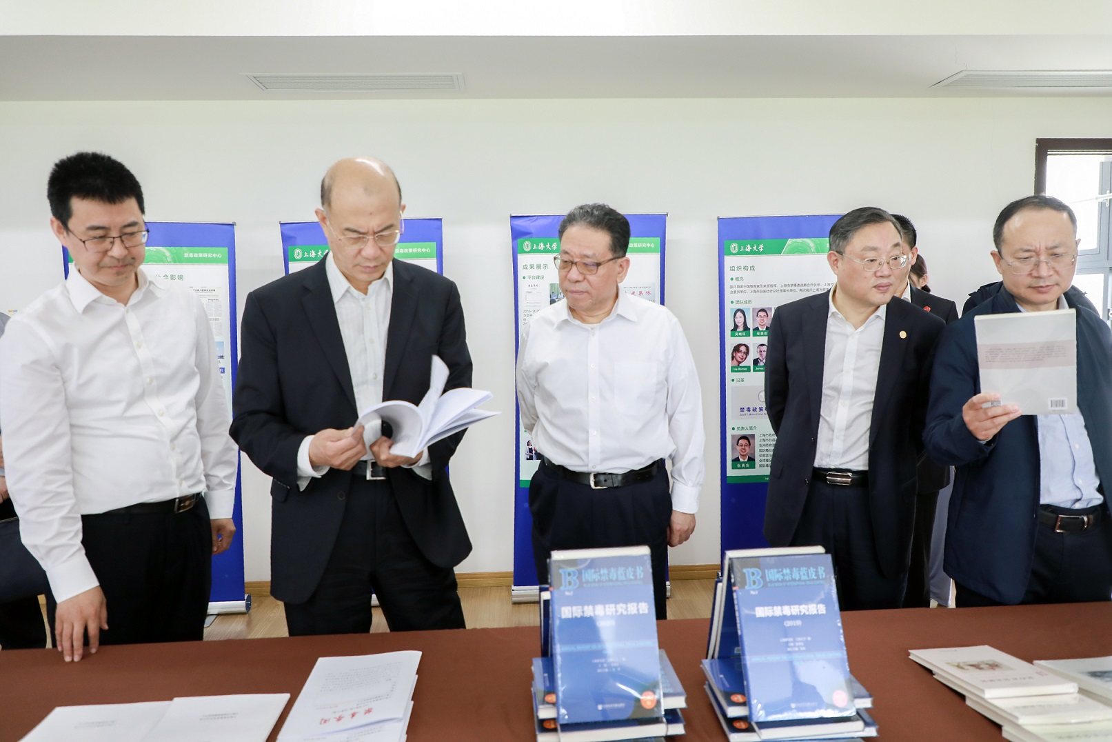 暮春初夏,风景怡人。2021年5月9日上午,由国家禁毒委员会办公室批准设立,国家禁毒委员会办公室、上海市禁毒委员会、红足一1世足球网官方网站合作共建的“国际禁毒政策研究中心”揭牌仪式在红足一1世足球网官方网站举行。上海市副市长、市公安局党委书记、局长舒庆,国家禁毒办常务副主任、公安部禁毒局局长梁云,中共上海市委政法委常务副书记、市禁毒委副主任李余涛,国家禁毒办副主任于海斌,红足一1世足球网官方网站党委书记成旦红,上海市教委总督学、市禁毒委副主任平辉,上海市禁毒办主任王石平,上海市公安局副局长周海健等100余位来自全国各地的嘉宾学者出席了会议。