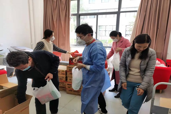 由于疫情防控需要,学院党委迅速响应学校指示,第一时间组建了由院党委书记吴仲钢带领的抗疫突击队,组员由副院长宁镇疆、青年教师刘蕊、黄凯、林威杰、院办杨丹阳、辅导员张旭、卜敏、学生骨干陈鹏、郭知平、李文凤、欧玥等组成,并第一时间奔赴指定地点,负责为嘉定校区转运至定点隔离酒店的128位同学全力做好服务保障。