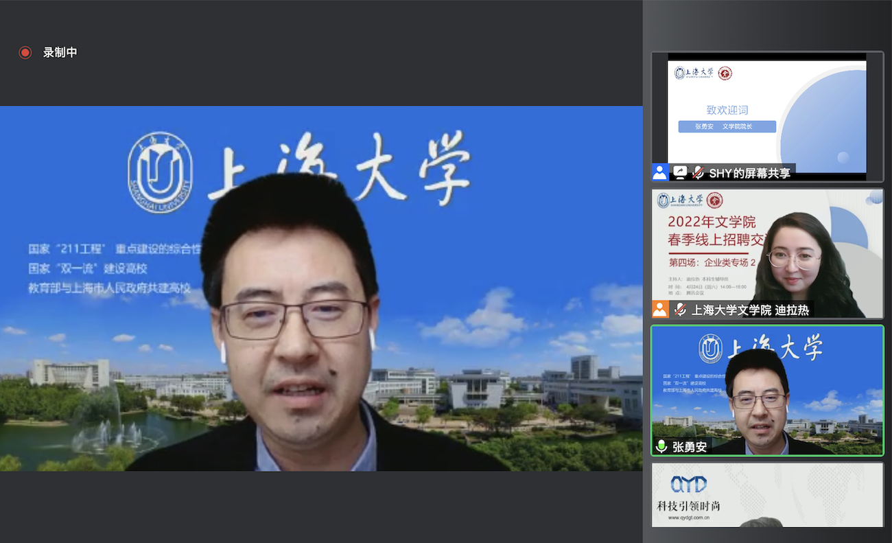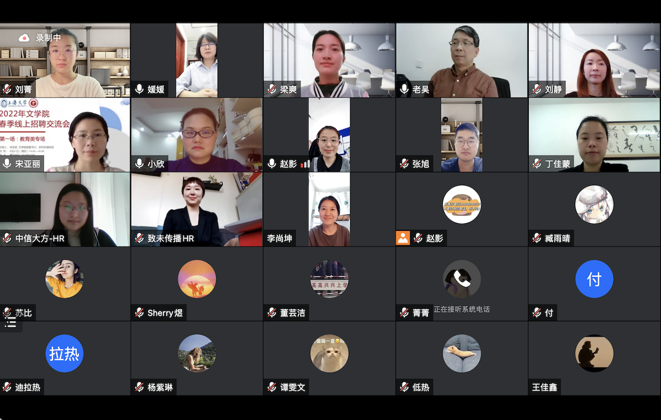 来自教育、咨询、出版、新闻等行业的十五家招聘单位在云端与同学们进行了一次深入的交流。此次招聘交流会分为4个专场:教育类专场、文化传播类专场、企业类专场一与企业类专场二,活动吸引了200余人次在线参加。