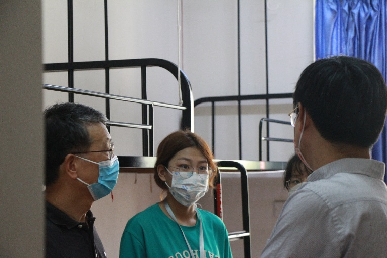 之后,学院领导、老师一同来到新生宿舍与同学们亲切交流,关切询问新环境的适应情况,关照同学们要做好疫情防护,鼓励新同学学好专业技能、锻炼自身本领、努力提升自我,从而实现个人价值,做追卓越、创一流的上大人。