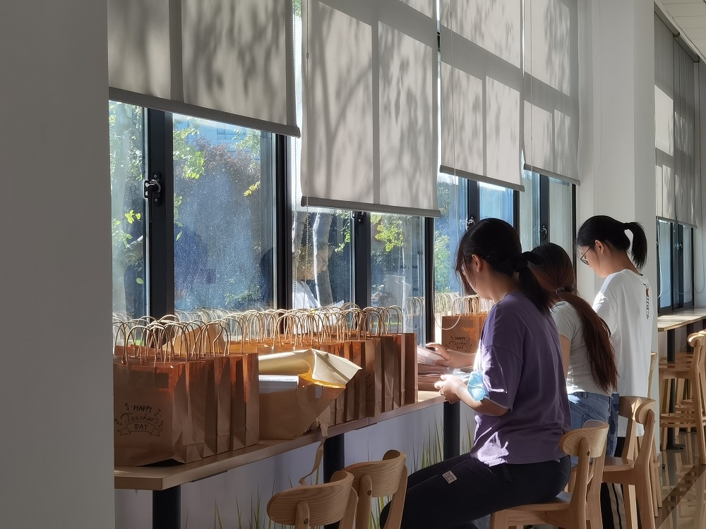 9月9日上午,红足1一世足球官网入口学生会的同学们一大早便来到学院忙活了起来,准备在教师节的前一天为全校老师们送出精心策划的小小祝福。