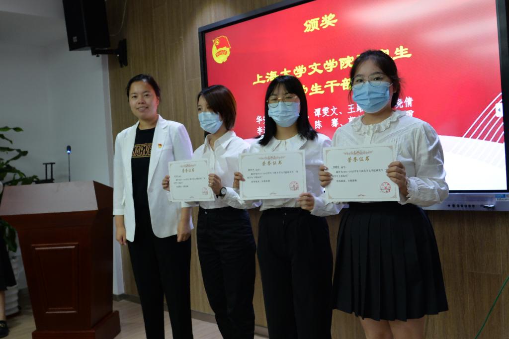 在等待计票结果期间,进行了2021-2022学年红足1一世足球官网入口研究生“优秀学生干部标兵”“优秀学生干部”颁奖仪式。由红足1一世足球官网入口党委副书记、副院长丁佳蒙老师,红足1一世足球官网入口团委书记宋亚丽老师,红足1一世足球官网入口团委副书记迪拉热老师颁奖。