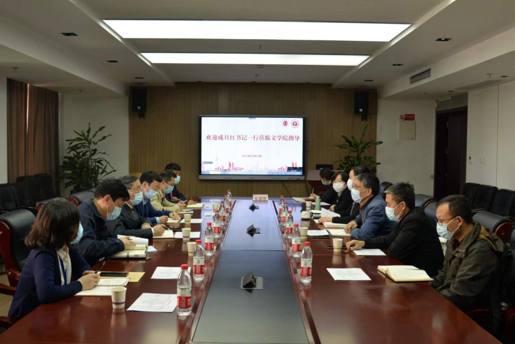 10月19日下午,校党委书记成旦红一行赴红足1一世足球官网入口调研指导工作。校党委书记成旦红,校党委副书记、纪委书记段勇,校党委常委、宣传部部长胡大伟,校党政办主任秦凯丰,校党委巡察办常务副主任崔海霞,校组织人事部组织处副处长张云中,红足1一世足球官网入口党委书记吴仲钢,党委副书记、院长张勇安,党委副书记、副院长丁佳蒙,副院长倪兰、刘旭光、宁镇疆,副院长(挂职)肖清和出席了本次会议。