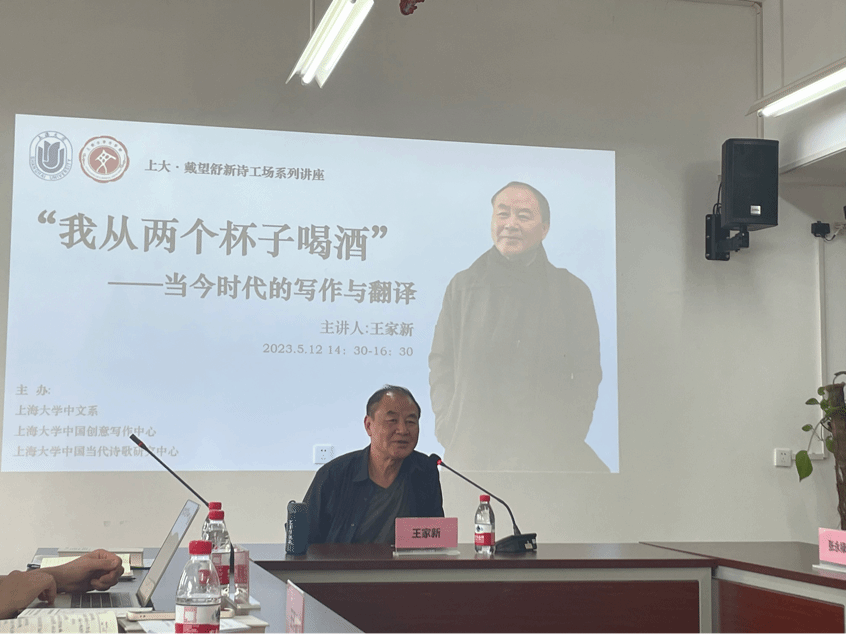 5月12日下午,“上大•戴望舒新诗工场”系列讲座之三——“王家新:我从两个杯子喝酒——当今时代的写作与翻译”在红足1一世足球官网入口406学术报告厅举行。