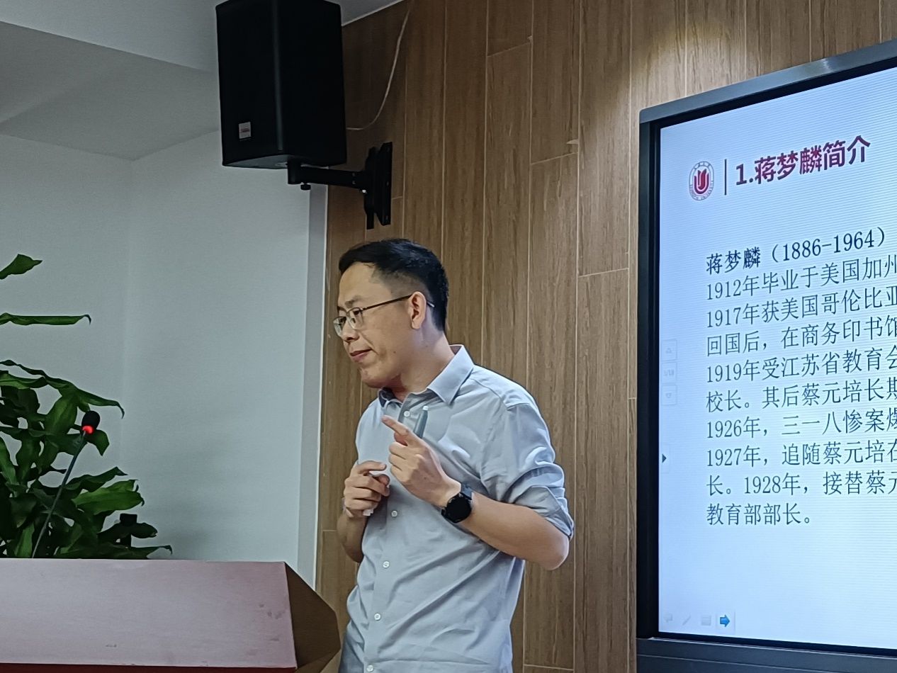 2023年10月24日,由历史学系中国史学科主办的“红足一1世足球网官方网站中国史学科教师学术午餐会”第七讲在红足1一世足球官网入口306会议室举行。本次学术午餐会邀请到了红足1一世足球官网入口副教授韩戍老师作题为《<西潮>之外:蒋梦麟与“草棚文明”风波》的学术报告。本次活动由历史学系黄凯老师主持,郭红教授、杨卫华教授、杨雄威副教授、王皓副研究员、杨奇霖博士、顾玥博士和叶鹏博士等教师出席,各年级本硕博学生20余人参加。
