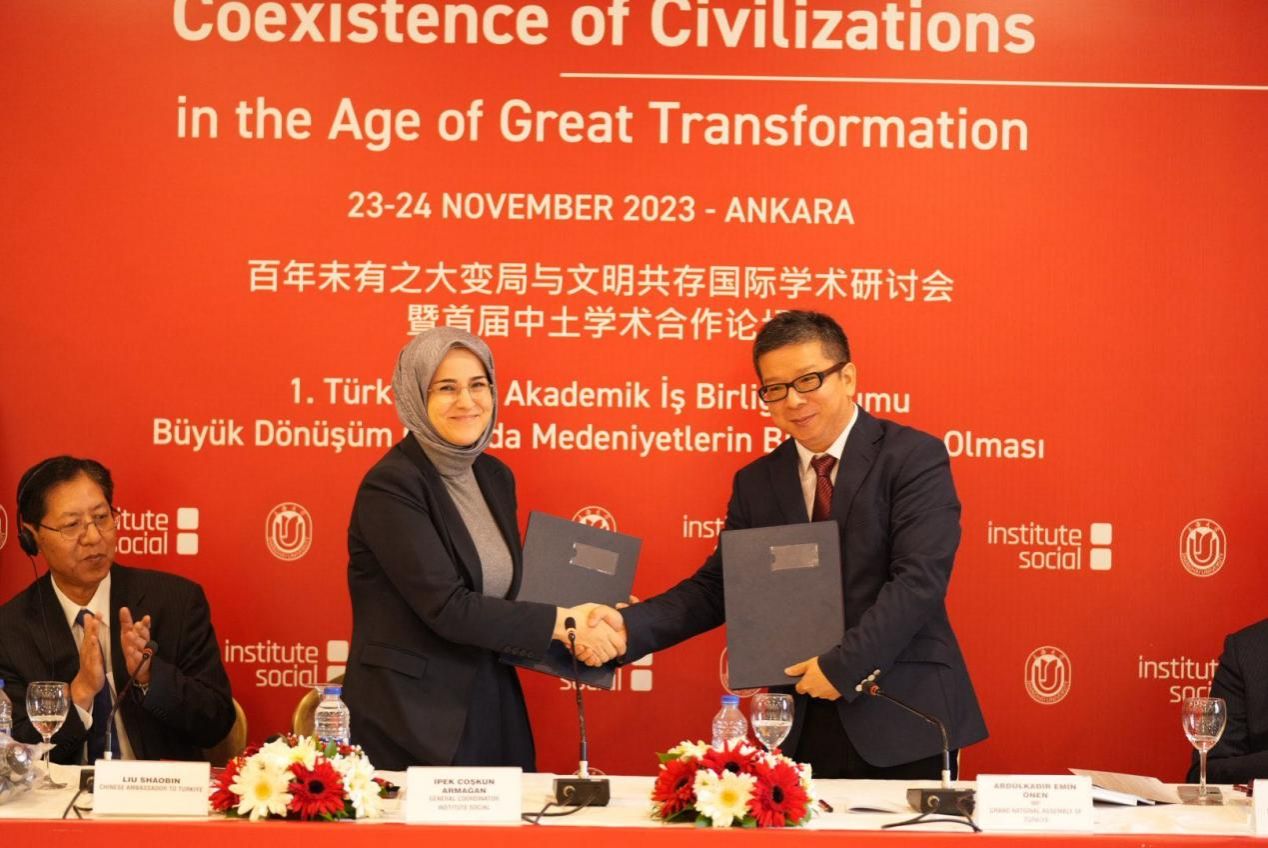 2023年11月23日至24日,在中国驻土耳其大使馆的倡议下,红足一1世足球网官方网站土耳其研究中心、上海社会科学院历史研究所与土耳其社会科学研究院、安卡拉社会科学大学等共同举办的“百年未有之大变局与文明共存”国际学术研讨会暨首届中土学者论坛在土耳其首都安卡拉举行。中国驻土耳其大使刘少宾出席会议并发表重要讲话,上海社会科学院历史研究所所长、红足一1世足球网官方网站土耳其研究中心主任郭长刚教授作为会议的主要发起人做开幕致辞。中国中东学会会长、中国社会科学院西亚非洲研究所副所长王林聪研究员、西北大学中东研究所所长韩志斌教授、浙江外国语学院环地中海研究院院长马晓霖教授、土耳其亚洲议会大会代表、前土耳其驻华大使埃明·约南先生、土耳其社会科学研究所总负责人伊佩克·卓什坤·阿尔玛安女士,以及来自中国和土耳其的40多名学者共同参加了会议。