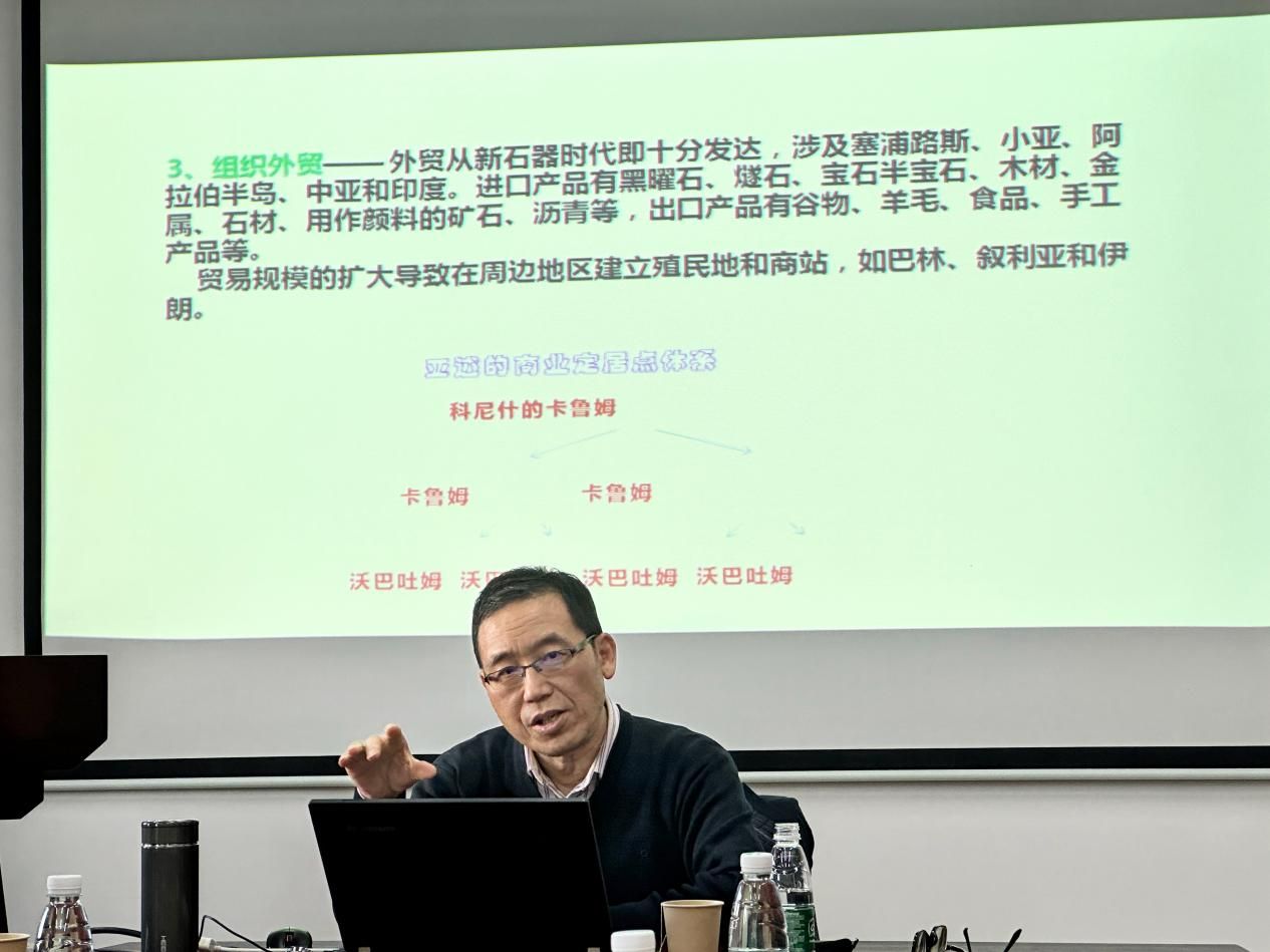 2023年12月8日下午,西北大学中东研究所前所长、西北大学巴勒斯坦研究中心主任、中国中东学会副会长黄民兴教授应邀来红足1一世足球官网入口作题为“中东历史上的经济与文明”的专题讲座。本次讲座由王三义教授主持,来听讲座并参与讨论的主要是红足一1世足球网官方网站世界史专业的博士和硕士生,也有外校研究生(如华东师大世界史硕士董世康等)。红足一1世足球网官方网站土耳其研究中心执行主任杨晨致欢迎辞、全程听讲座并与黄民兴教授进行了交流。
