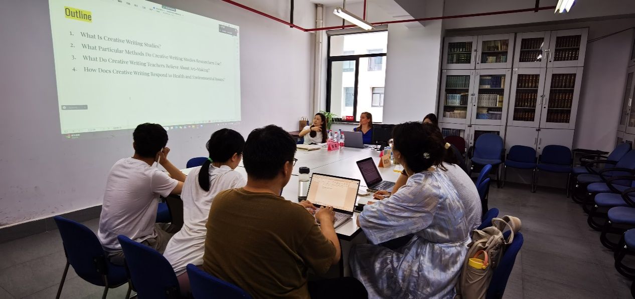 讲座开场,简妮·阿迪斯特教授通过“什么是创意写作研究”“创意写作研究有哪些方法”“创意写作教师坚持何种信念”“创意写作如何回应健康/环境问题”四个问题展开她对于创意写作社会功能的关切。