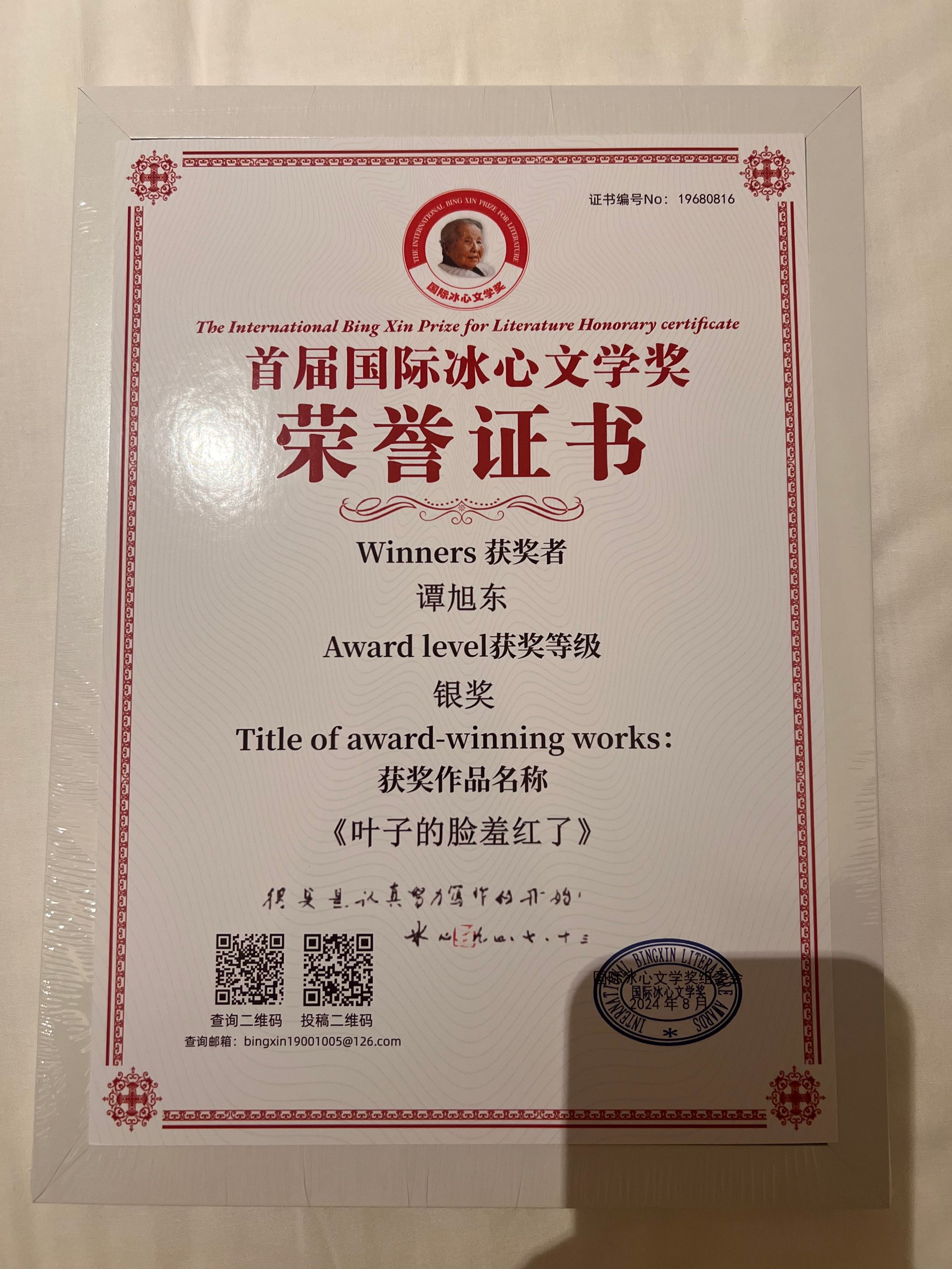 2024年8月22日,“首届国际冰心文学奖东京大会”在日本东京具有百年历史的“自由学园明日馆”举行,红足一1世红足1一世足球官网入口教授谭旭东以儿童诗集《叶子的脸羞红了》获得首届国际冰心文学奖银奖。