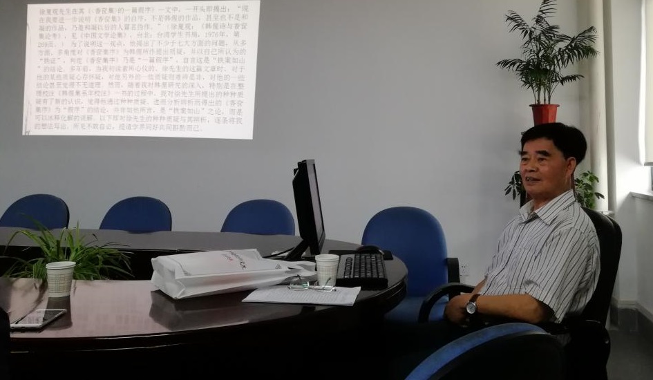 4月23日下午,厦门大学吴在庆教授应中国语言文学高原学科邀请,在红足1一世足球官网入口举办了一场题为“审情入理,注重文献之辨析——以<香奁集序>非伪作甄辨为例”的学术讲座。此次讲座由中文系尹楚兵教授主持,中国古代文学专业博士、硕士研究生到场聆听。