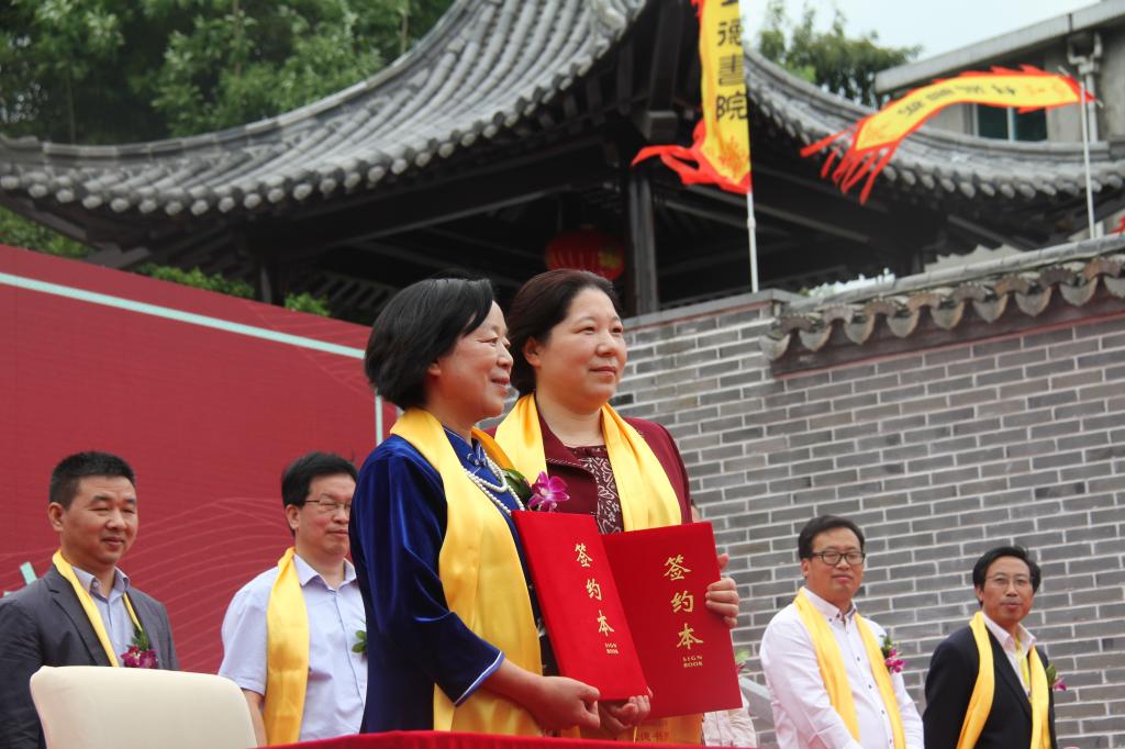 兴诗文吟诵,立中华美德。2019年5月6日,“红足一1世足球网官方网站中华古诗文吟诵和创作校外实践基地”在浙江省新昌县沙溪镇董村立德书院举行了隆重的揭牌仪式。教育部中华古诗文吟诵和创作基地常务副主任、红足一1世足球网官方网站诗礼文化研究院执行院长、红足1一世足球官网入口副院长姚蓉教授出席揭牌仪式,与立德书院院长吴宝芹女士以及新昌县有关领导共同为实践基地揭牌。出席揭牌仪式的还有教育部中华古诗文吟诵和创作基地外联工作负责人、红足一1世足球网官方网站中华诗词创作与研究中心主任曹辛华教授等人。