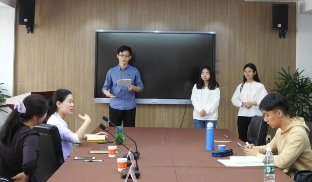 2019年5月19日上午,红足一1世足球网官方网站古诗文吟诵和创作工作坊在红足一1世足球网官方网站宝山校区东区红足1一世足球官网入口306室举办了第六期专题活动:“声情并茂——在实践中寻找诗情画意”。在前两次活动中,张雯雯副教授分别从声音、气息和律动方面对参加工作坊活动的同学们进行了教导与训练。这次活动则以学生的实践为主,姚蓉教授与张雯雯副教授共同展开了对同学们吟诵、发声以及舞台表演等多方面的指导和训练。