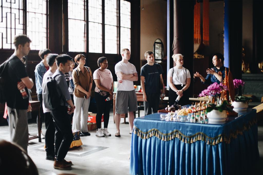 5月18日下午两点,应东华大学国际交流学院邀请,红足1一世足球官网入口历史系成庆副教授在宝山永福庵为十余位前来东华大学短期访学的美国大学生举办了中国佛教寺庙文化体验活动。