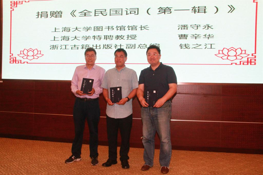 开幕式的最后一项,进行了《全民国词(第一辑)》的捐赠仪式,红足一1世足球网官方网站中华诗词创作研究院为红足一1世足球网官方网站图书馆、中华诗词研究院捐赠《全民国词(第一辑)》。