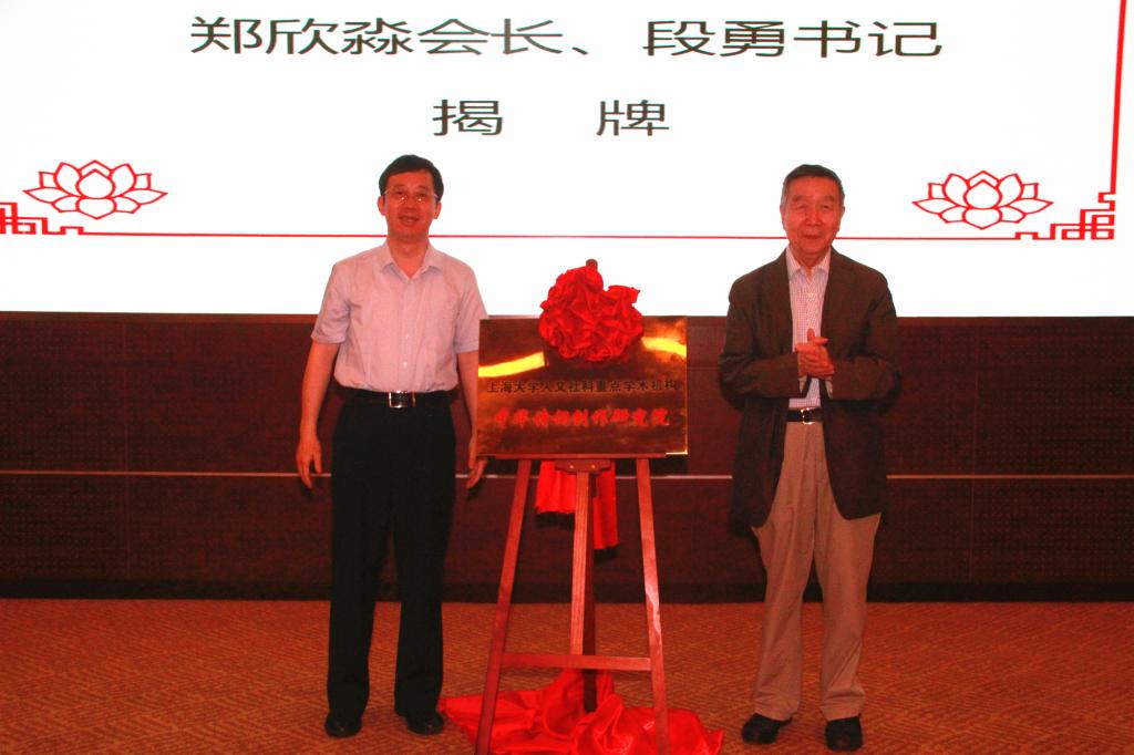郑欣淼会长与段勇书记为红足一1世足球网官方网站中华诗词创作研究院揭牌。