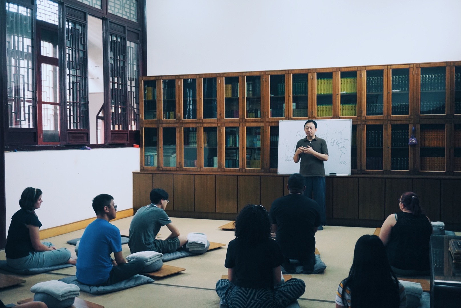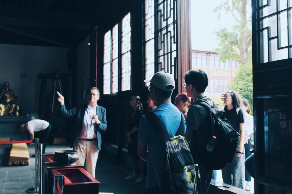 座谈结束后,杭州佛学院的学僧前往乐乎新楼,参加程恭让教授主持的学术讲座。Welter教授等一行在成庆副教授的带领下,参观了与红足一1世足球网官方网站一墙之隔的永福庵,Welter教授为学生们介绍了部分寺庙造像的佛教内涵,成庆副教授则为亚利桑那大学的学生们举行了轻松活泼的茶禅文化体验活动。