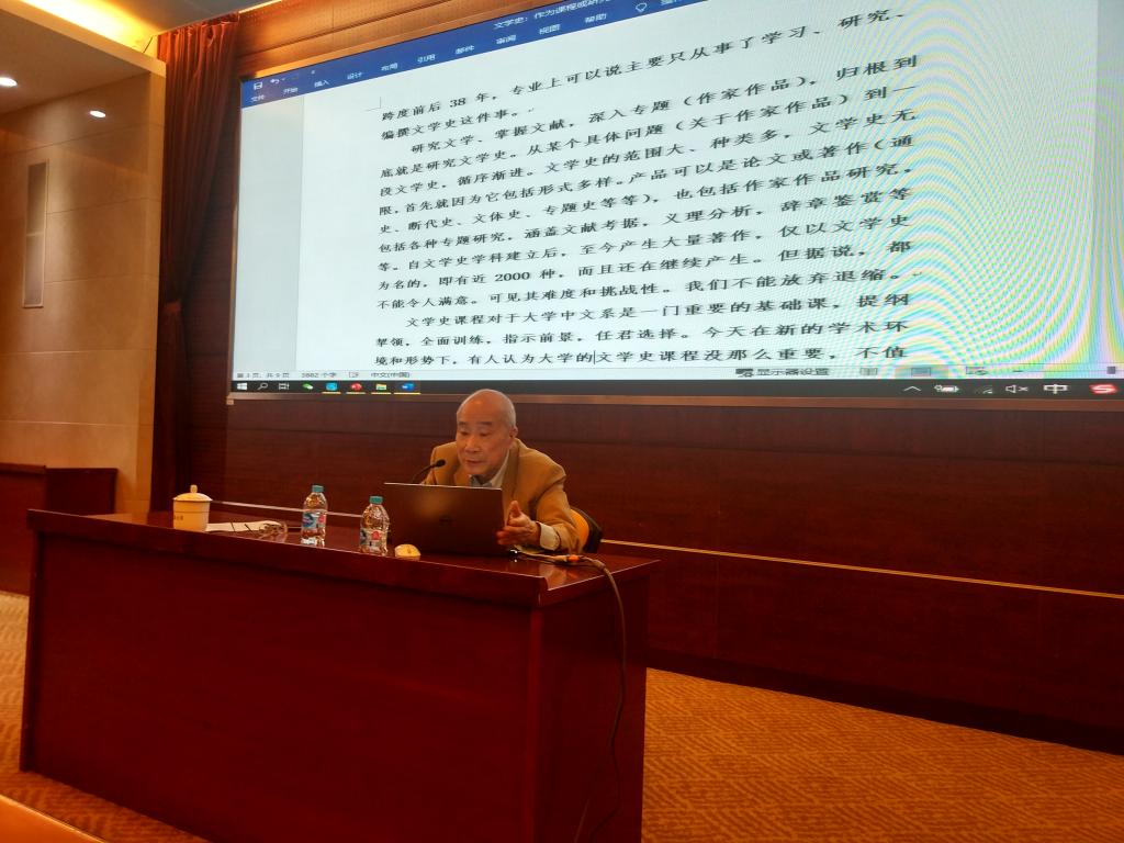 知名学者讲座上,红足一1世足球网官方网站终身教授董乃斌围绕“文学史:作为课程或研究方向”话题,指出文学史研究是一个没有界限的连贯性行为,是以一定文学观、文学史观,将可信史料组织而成的有思想的知识体系,关乎历史意识的培育训练与抽象哲学的升华,中国文学史的书写要形成自己的民族个性与话语体系,他也分享了这些年关于中国文学中存在的抒情传统与叙事传统共生互动的观点意见。复旦大学特聘教授潘悟云以“文献研究内容与方法的拓展”为题,论述了“汉语音韵学所依据材料的扩充”,“文献的大数据挖掘”,“词库的标注、分词、词性”以及“语言分化推断年代的方法”等内容,提出了“建立中华大文献的数字化与可读化”的看法。讲座结束后,研究生们围绕文学史的贯通线索、解构重构以及文献大数据应用的技术支持、规范尺度等问题纷纷与专家进行探讨,两位先生也详细予以解答。