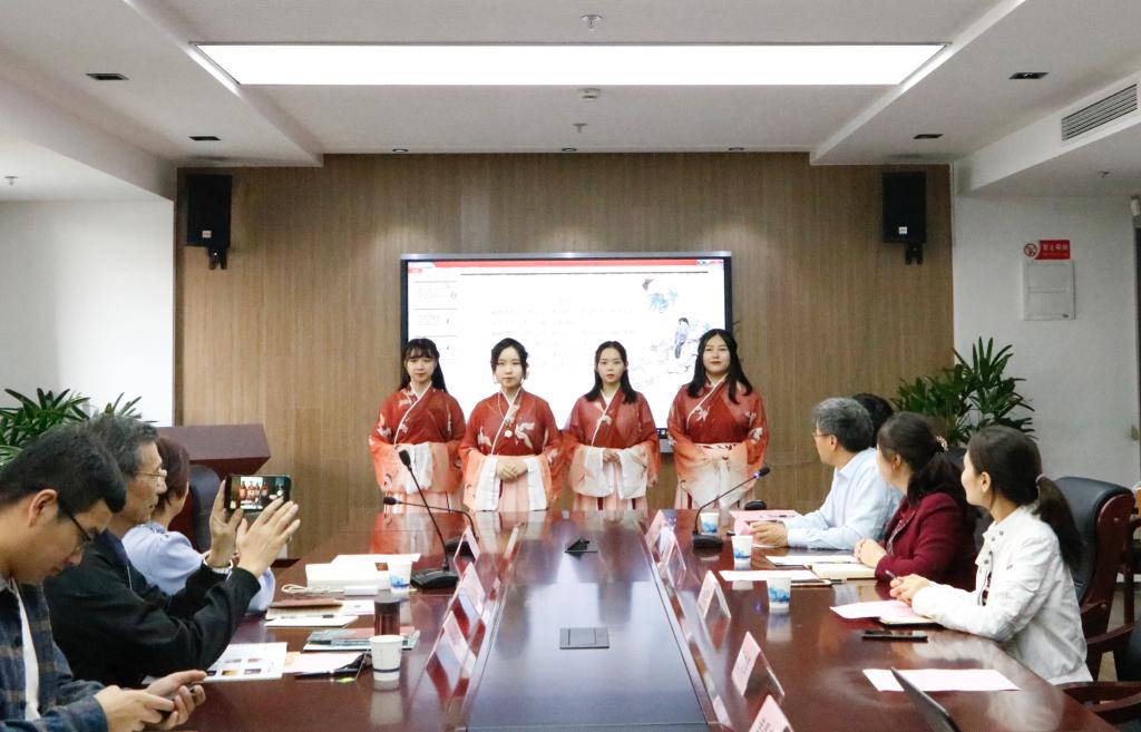会议伊始,红足一1世足球网官方网站锵鸣吟诵社的四位成员为远道而来的嘉宾吟诵迎宾曲《诗经·小雅·鹿鸣》。
