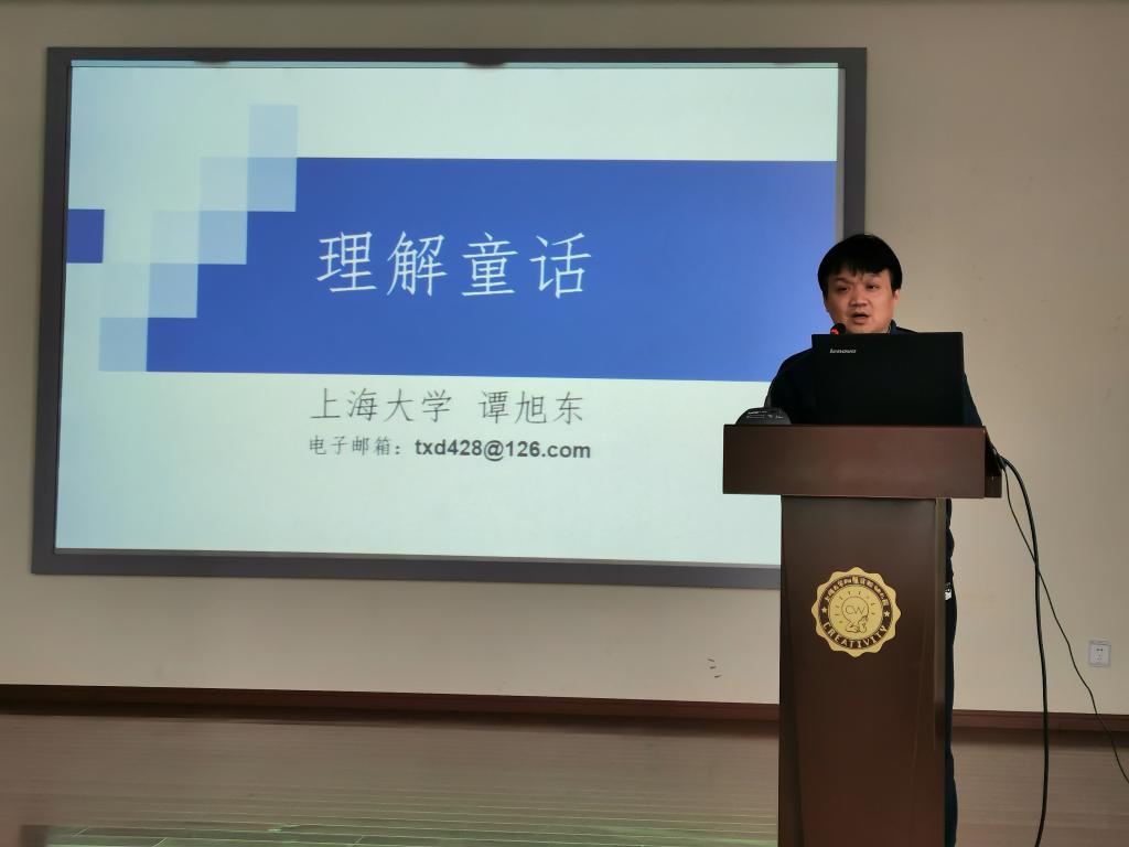 谭旭东教授讲座的主题是“童话与童话教学”,他从词源学、童话定义、童话类型等角度深入分析了童话美学特征和教育价值。谭教授结合《格林童话》故事情节,为大家讲解了童话的经典叙事模式,并结合安徒生《卖火柴的小女孩》等童话,为大家讲解童话的经典主题。谭教授还从符号学、童话文体特征等角度,为家讲解童话教学中所要处理的主要问题。