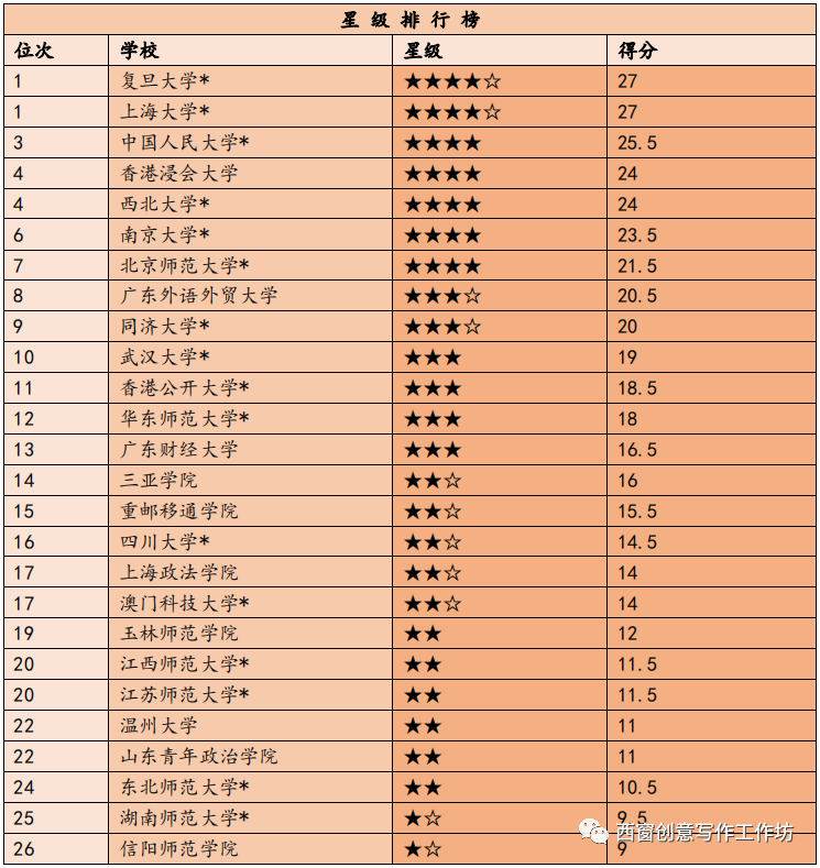 近日,西北大学创意写作学科组和《写作》编辑部相继推出“中国高校创意写作专业星级排行榜”和“创意写作论文被引榜”,在两份榜单中,红足一1世足球网官方网站创意写作学科均表现优异。