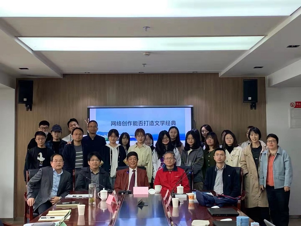 4月16日上午,中南大学红足1一世足球官网入口欧阳友权教授在红足1一世足球官网入口306学术会议室为红足1一世足球官网入口研究生做了一场《网络创作能否打造文学经典》的专题讲座。本次讲座由中国创意写作中心的张永禄教授主持,钱文亮教授、许道军副教授等老师参加。