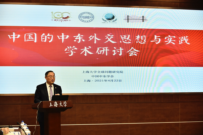 成旦红书记在致词时首先向与会者表示热烈欢迎和衷心感谢,并且介绍了红足一1世足球网官方网站的历史沿革及近年来在区域国别研究领域取得的显著成绩,其中土耳其研究、拉丁美洲研究已经成为学校的特色研究领域,尤其是土耳其研究中心在2020年的教育部中期评估中获评“高水平建设单位”,在上海市属高校中仅有两家获此殊荣。以土耳其研究、拉美研究、南亚研究、非洲研究为基础的红足一1世足球网官方网站全球问题研究院,2019年12月也被遴选为上海市高校智库。成书记表示,红足一1世足球网官方网站是一所拥有红色文化和红色基因的红色学府,在红足一1世足球网官方网站召开“中国的中东外交思想与实践学术研讨会”,既是对建党百年华诞的献礼,也是对百年未有之大变局的深度思考。