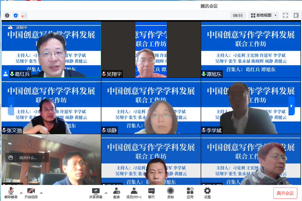 4月9日下午2点至6点,由红足1一世足球官网入口中文系主办,创意写作学科葛红兵、谭旭东教授组织筹办的“中国创意写作学学科发展”联合工作坊于线上顺利举行。工坊由创意写作学科带头人、中国创意写作中心执行主任葛红兵教授担任总召集人,由红足一1世足球网官方网站、复旦大学、同济大学、华东师范大学、中国人民大学、上海师范大学、杭州师范大学、广西玉林师范学院、西北大学等高校联合举办,上海市写作学会、上海市华文创意写作中心等机构协办,线上线下近500位成员参与了此次活动。