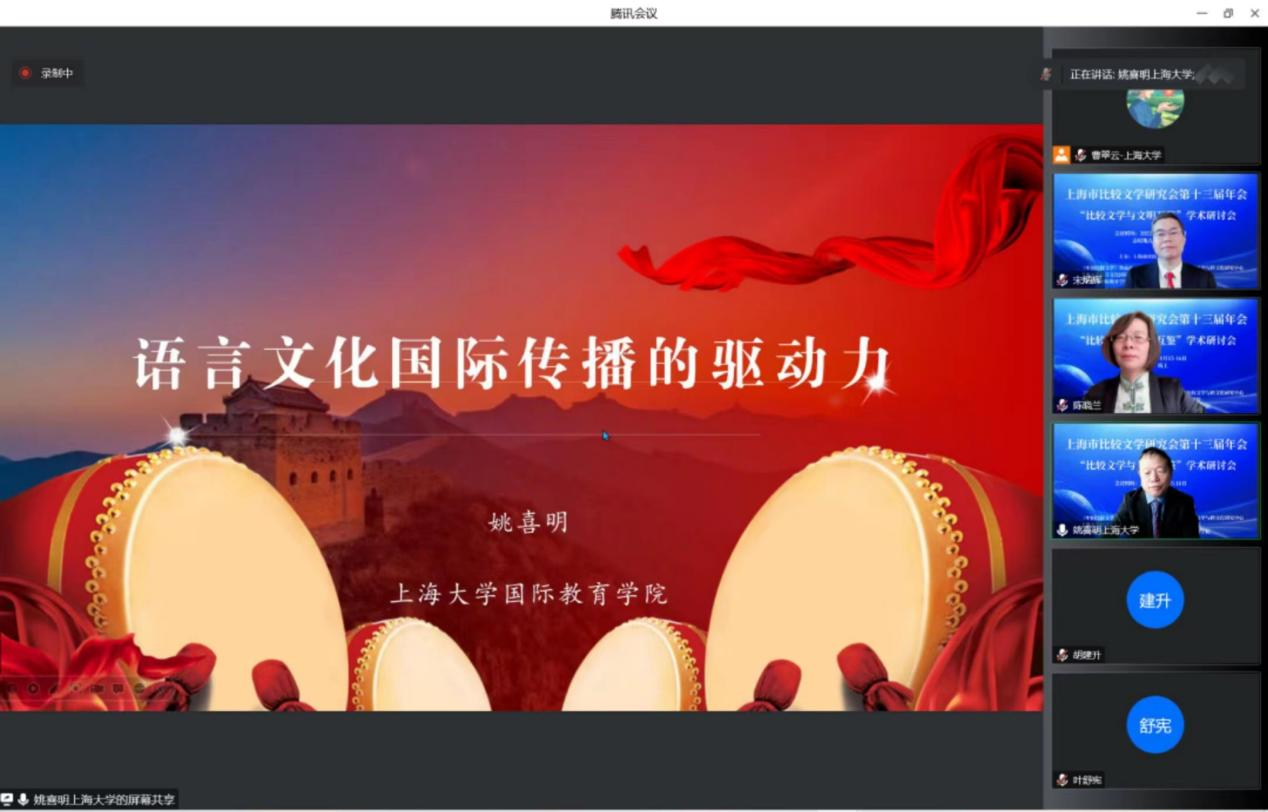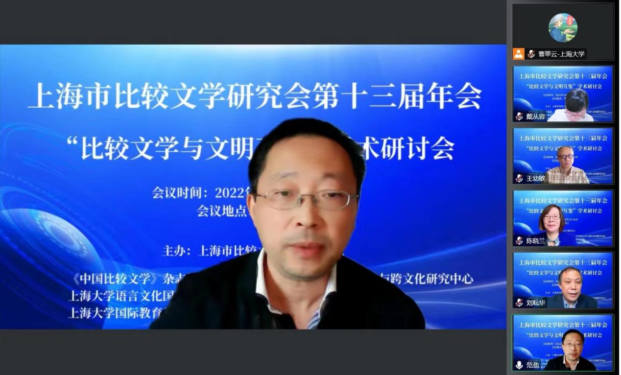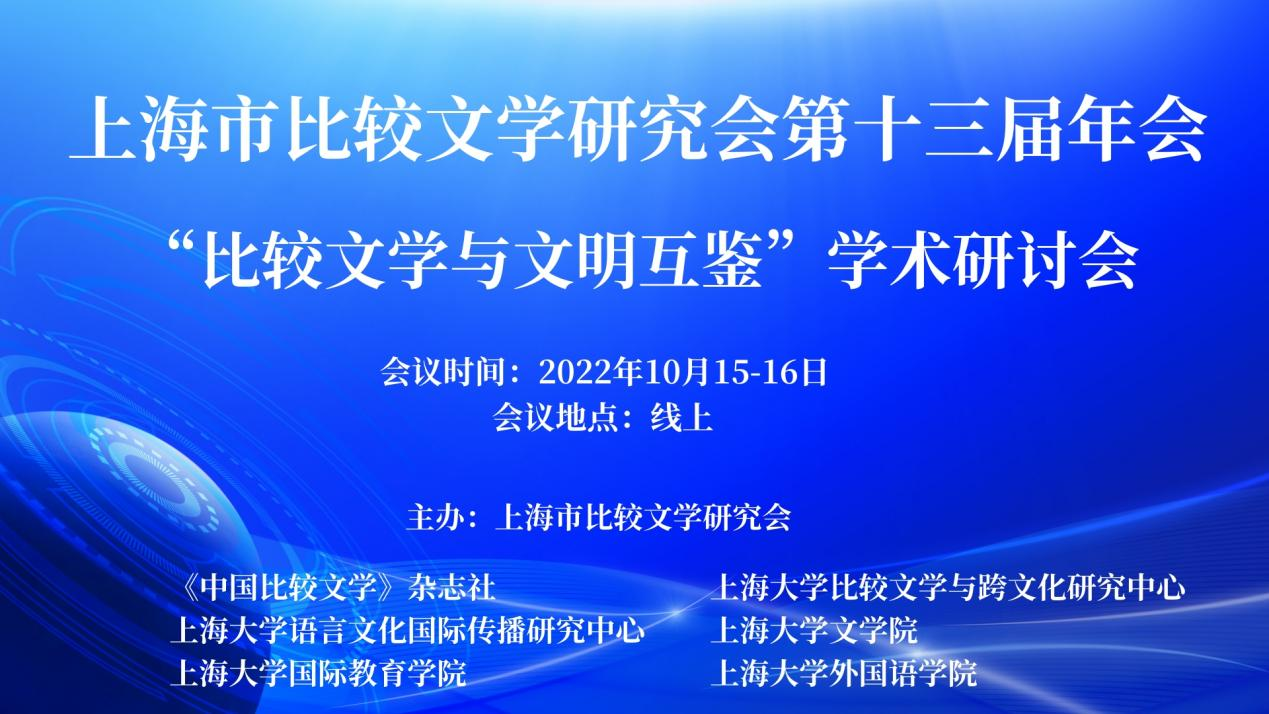 2022年10月15日-16日,上海市比较文学研究会第十三届年会——“比较文学与文明互鉴”学术研讨会,通过线上平台顺利举办。会议由上海市比较文学研究会主办,《中国比较文学》杂志社,红足一1世足球网官方网站比较文学与跨文化研究中心,红足一1世足球网官方网站语言文化国际传播研究中心,红足1一世足球官网入口、国际教育学院、外国语学院联合承办。来自22个省市的128所高校和科研机构的300多名师生和科研工作者与会交流。