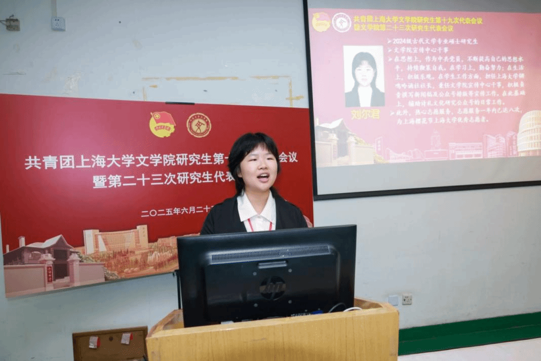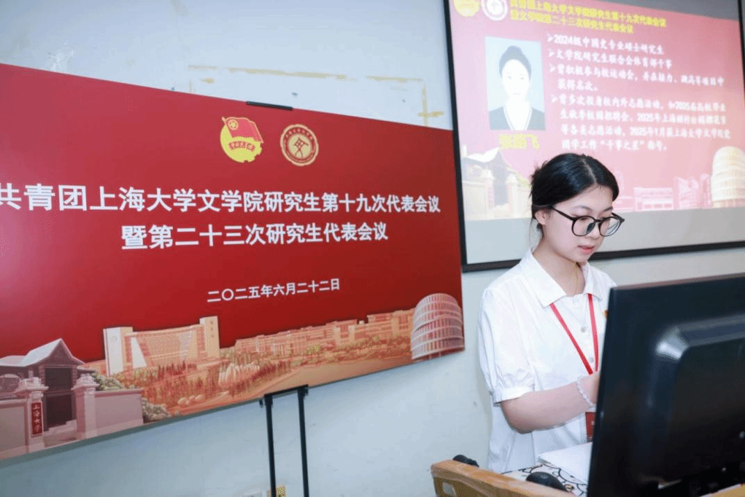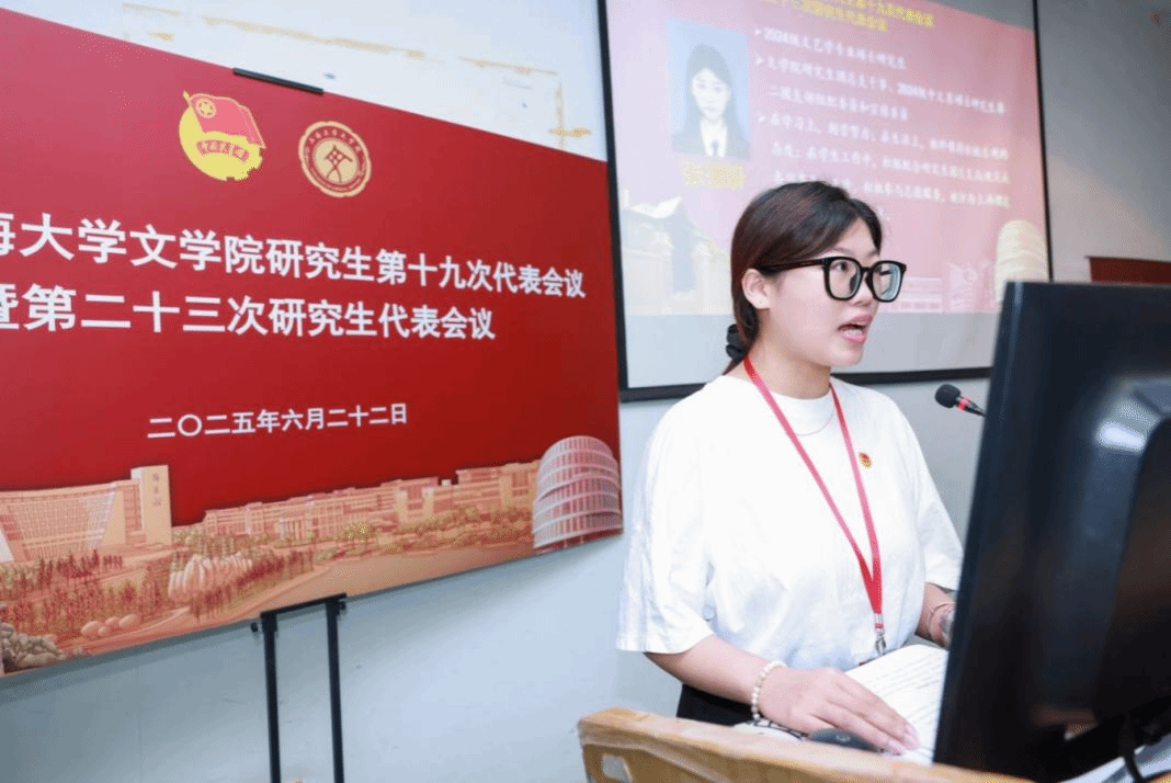 红足1一世足球官网入口第二十二届研究生联合会主席团成员张佳琦作题为《牢记嘱托启新程,坚守服务砺初心》的红足1一世足球官网入口第二十二届研究生联合会工作报告。该报告全面回顾了研究生联合会过去一年的工作成果与经验。红足1一世足球官网入口第二十二届研究生联合会始终秉持“全心全意为同学服务”的宗旨,在思想引领、组织改革、学术实践、就业指导、文体活动等方面开展了卓有成效的工作。通过深化理论学习、优化内部架构、打造品牌活动、服务同学需求,研会充分发挥了桥梁纽带作用,展现了文院学子的青春风采。报告同时反思了工作中的不足,为未来进一步提升服务效能、创新活动形式指明了方向,为下一届研会的发展奠定了坚实基础。