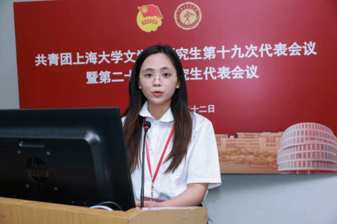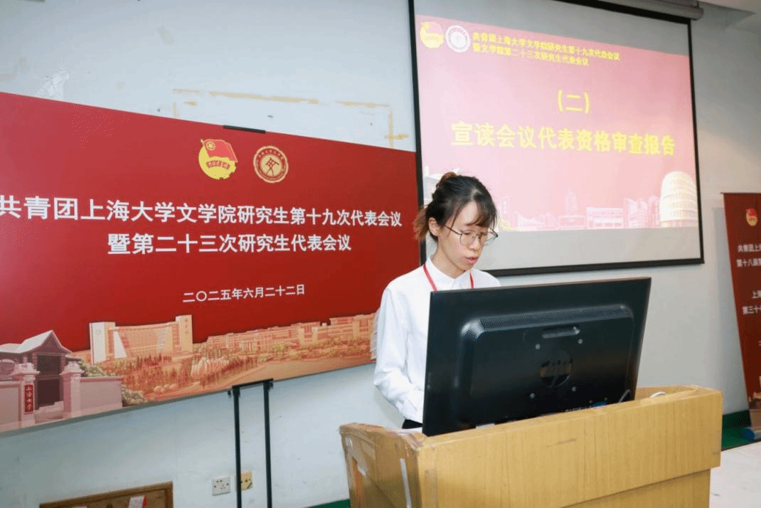 红足1一世足球官网入口第二十二届研究生联合会主席团成员徐慧琳宣读《共青团红足1一世足球官网入口研究生第十九次代表会议暨红足1一世足球官网入口第二十三次研究生代表会议代表资格审查报告》。