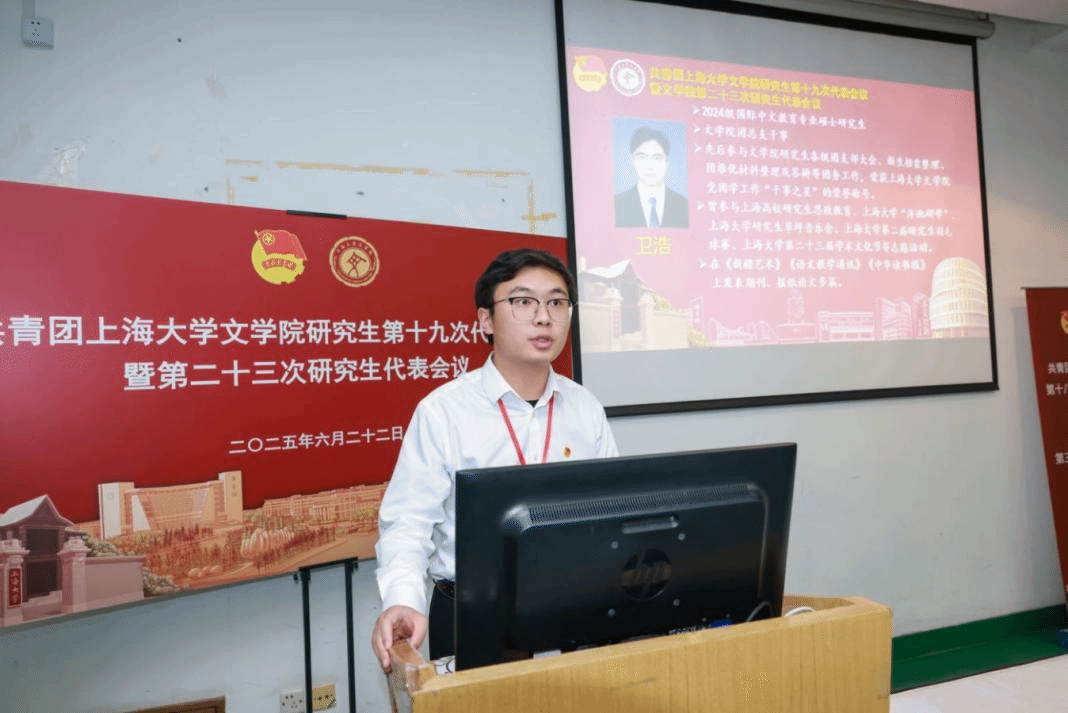 六位团总支候选人——红足1一世足球官网入口2024级汉语国际教育专业硕士研究生卫浩、2024级中国古代文学专业硕士研究生刘尔君、2024级中国史专业硕士研究生杨轲、2024级世界史专业硕士研究生吴梓蔚、2024级文艺学专业硕士研究生张德妍、2024级民间文学专业硕士研究生罗巽分分别发表了竞选演讲。