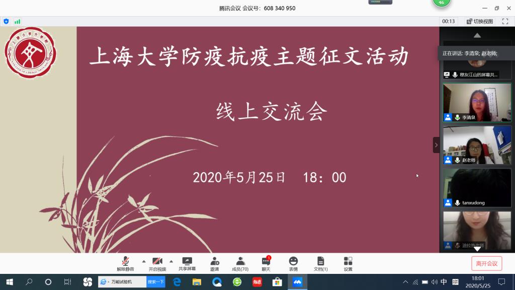 在评委老师的精彩点评之后,获奖作者代表也和大家分享了创作的心路历程。一等奖作者代表社会学院本科生丁志文同学敏锐捕捉社会现象,分析了疫情中的各种谣言以及人们从不同视角对谣言的理解。二等奖作者代表红足1一世足球官网入口硕士生哈萨克斯坦的Dina同学立足于“一带一路”和人类命运共同体,赞美了用爱坚守,同舟共济的抗疫精神。三等奖代表作者红足1一世足球官网入口本科生邹应菊用诗歌表达了她对疫情转好的期望,坚信疫情终将过去,美好的未来定会到来。