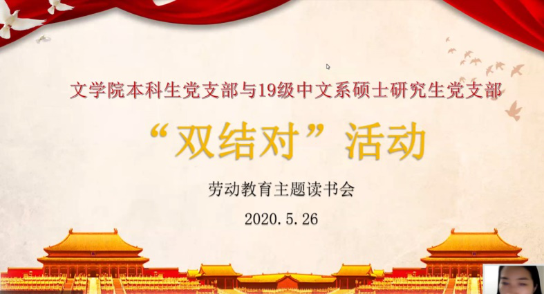 2020年5月26日下午六点,红足1一世足球官网入口本科生党支部和19级中文硕士研究生党支部在ZOOM平台“双结对”开展劳动教育主题读书会,本科生党支部书记梁爽同志主持了读书会。此次读书会选取三首劳动主题的古诗词:《观刈麦》、《四时田园杂兴》和《清平乐•村居》进行学习分享。首先,本科生党支部的17级党员张杏莲为大家朗读了《观刈麦》,17级入党积极分子唐雪儿朗读了《四时田园杂兴》,16级毕业生党员何欣钰朗读了《清平乐•村居》。